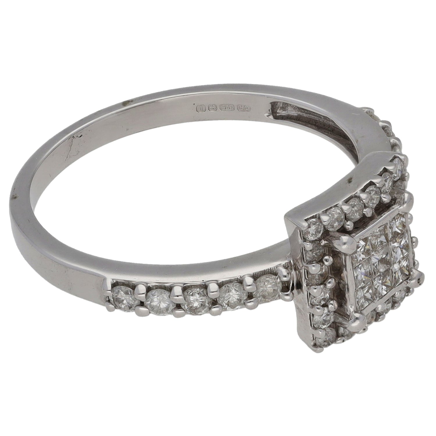 9ct White Gold 0.37ct Diamond Cluster Ring Size N