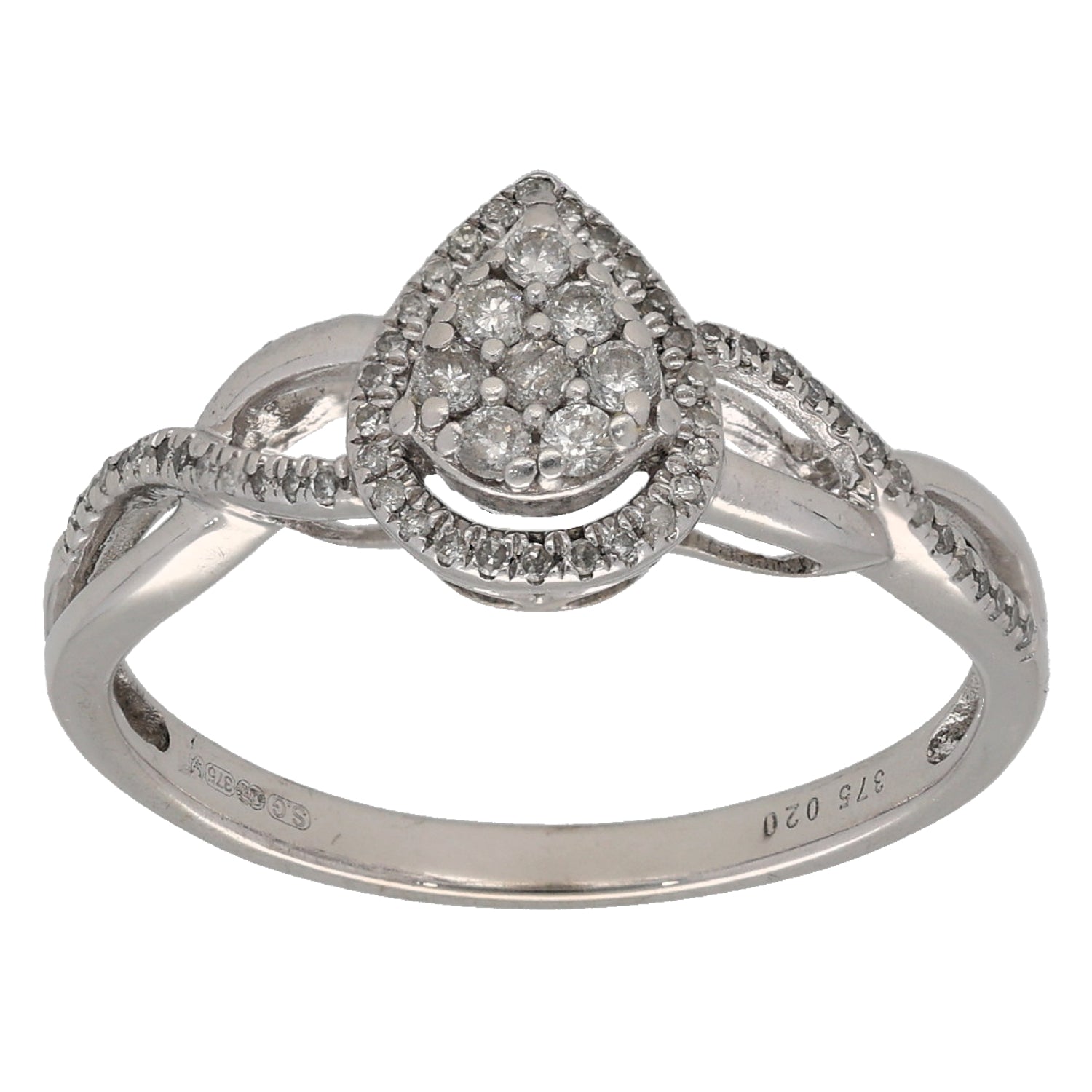 9ct White Gold 0.20ct Diamond Cluster Ring Size O