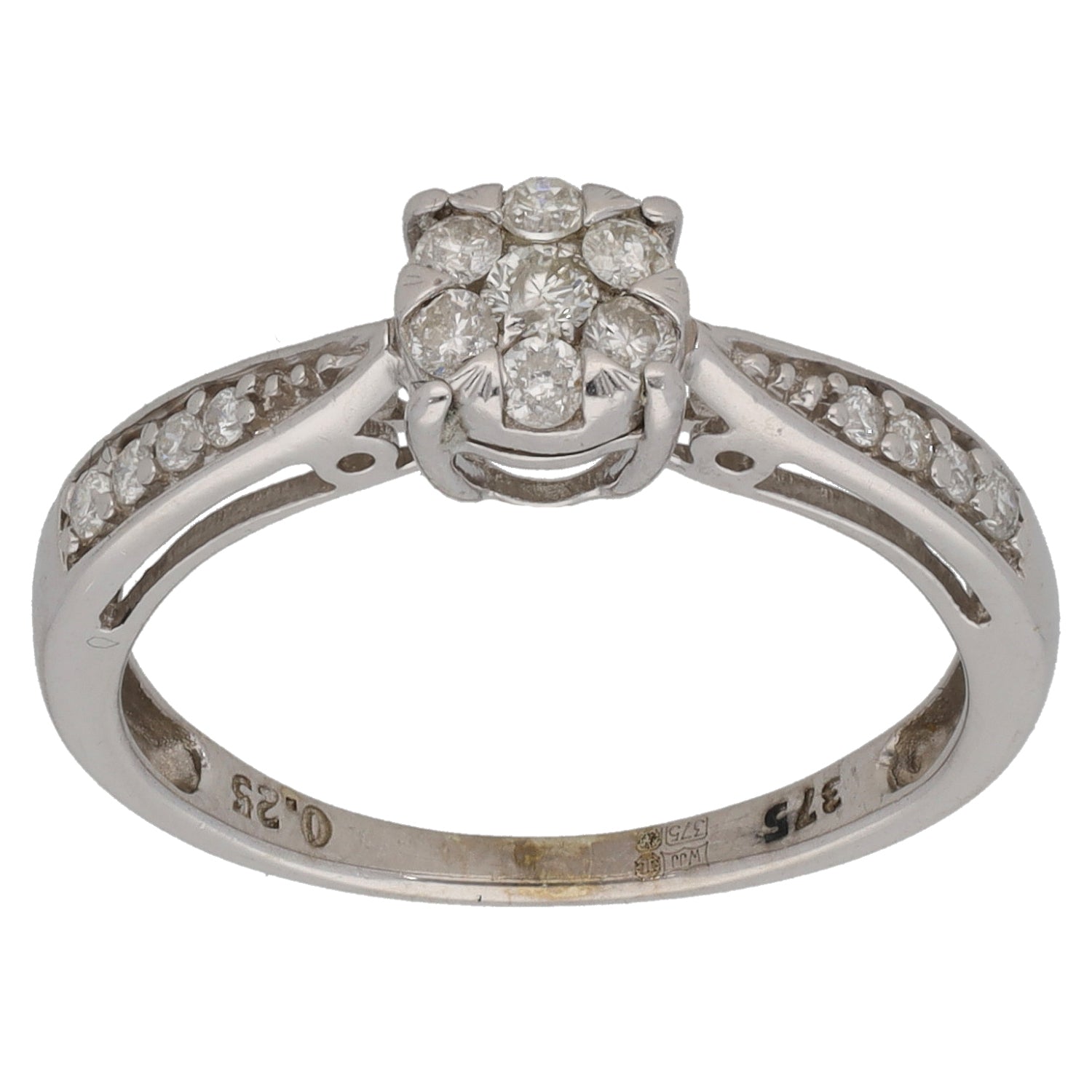 9ct White Gold 0.25ct Diamond Cluster Ring Size M