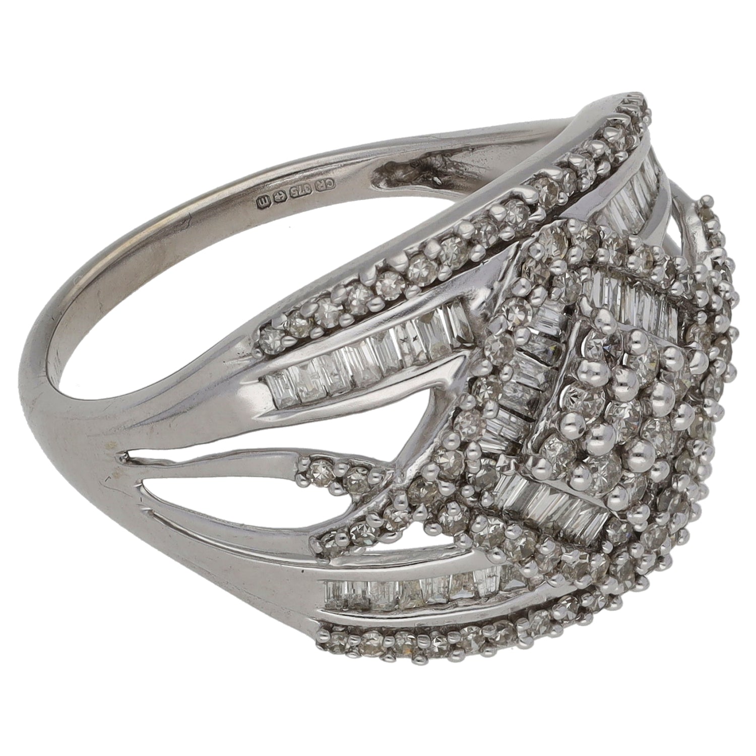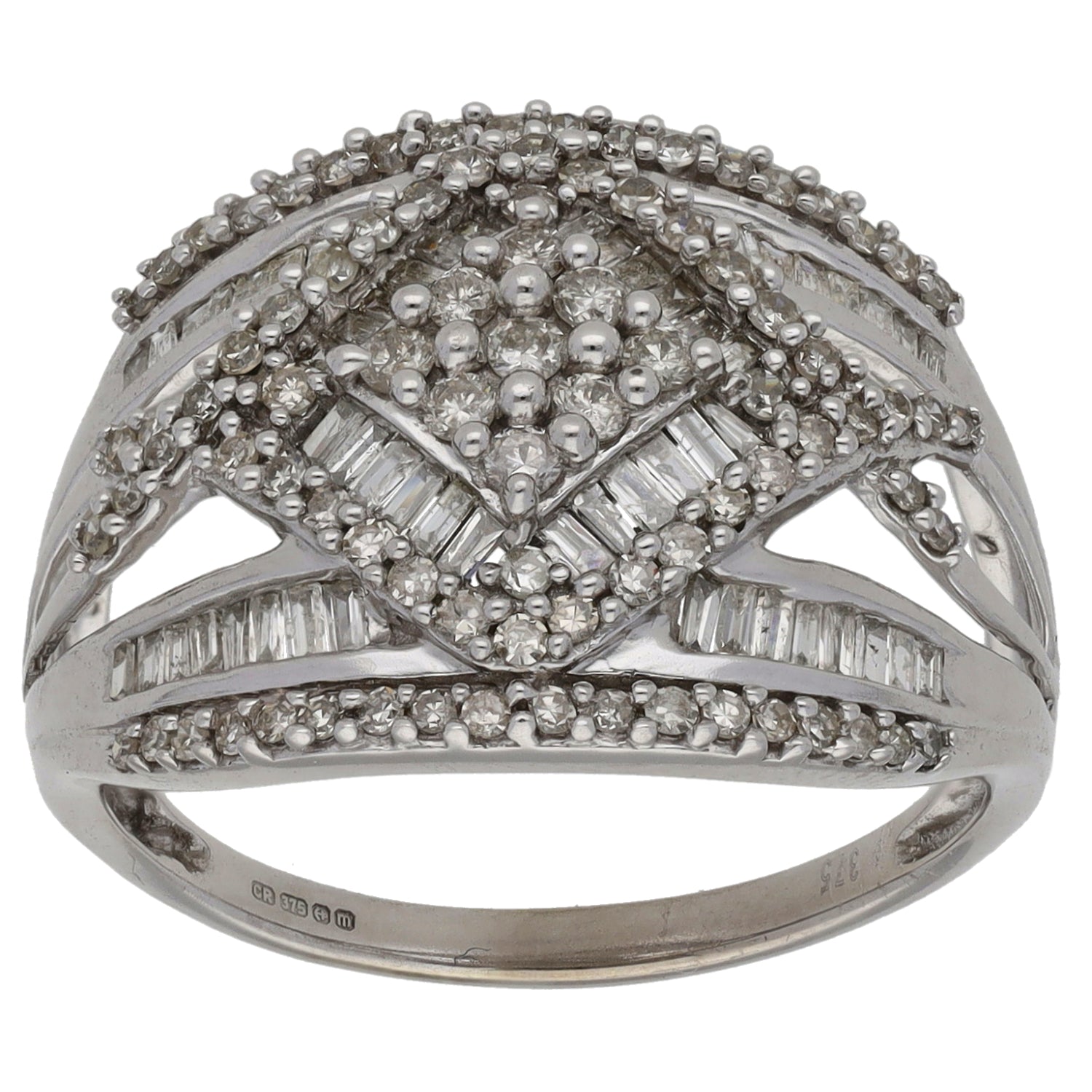 9ct White Gold 0.745ct Diamond Dress/Cocktail Ring Size S