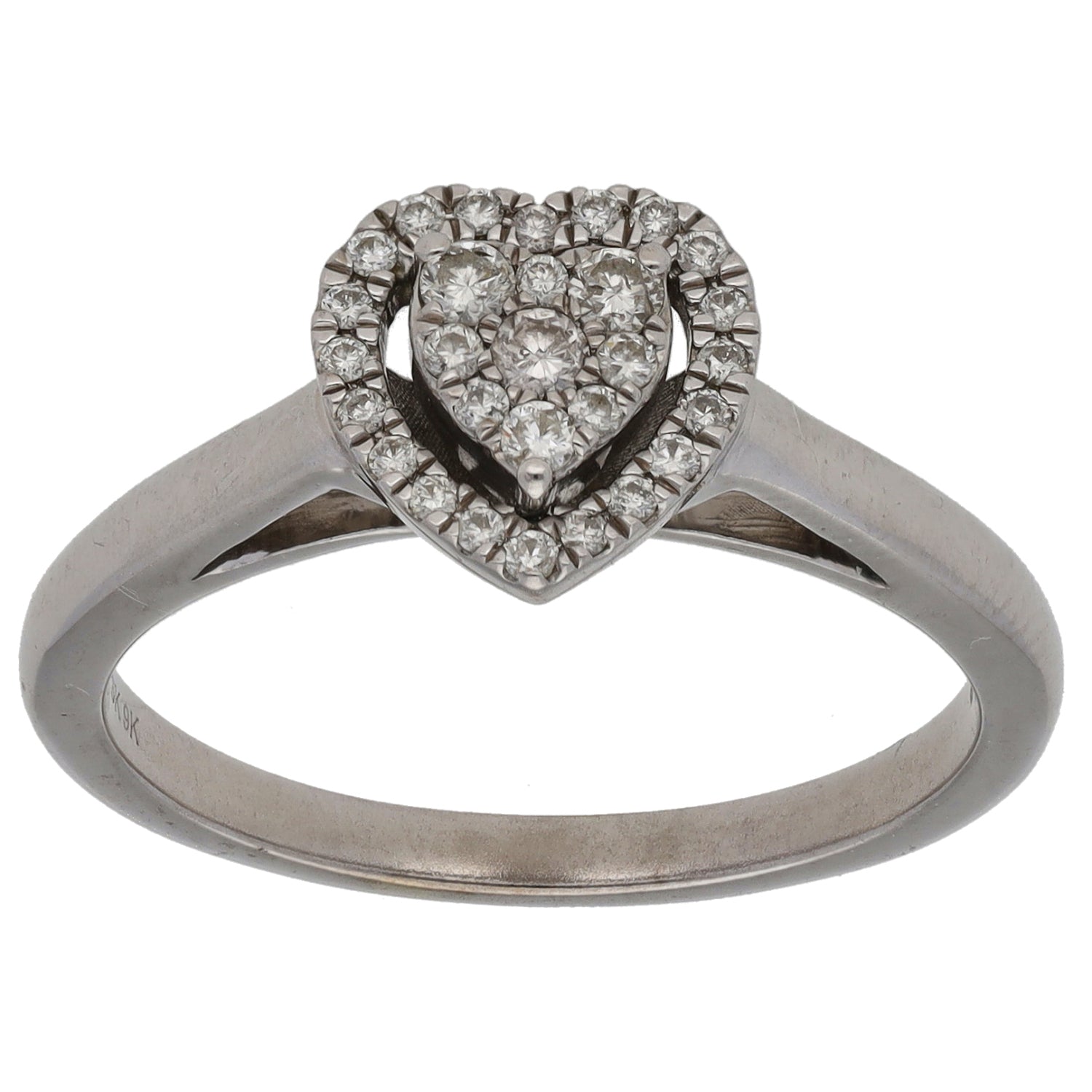 9ct White Gold 0.24ct Diamond Heart Dress/Cocktail Ring Size Q