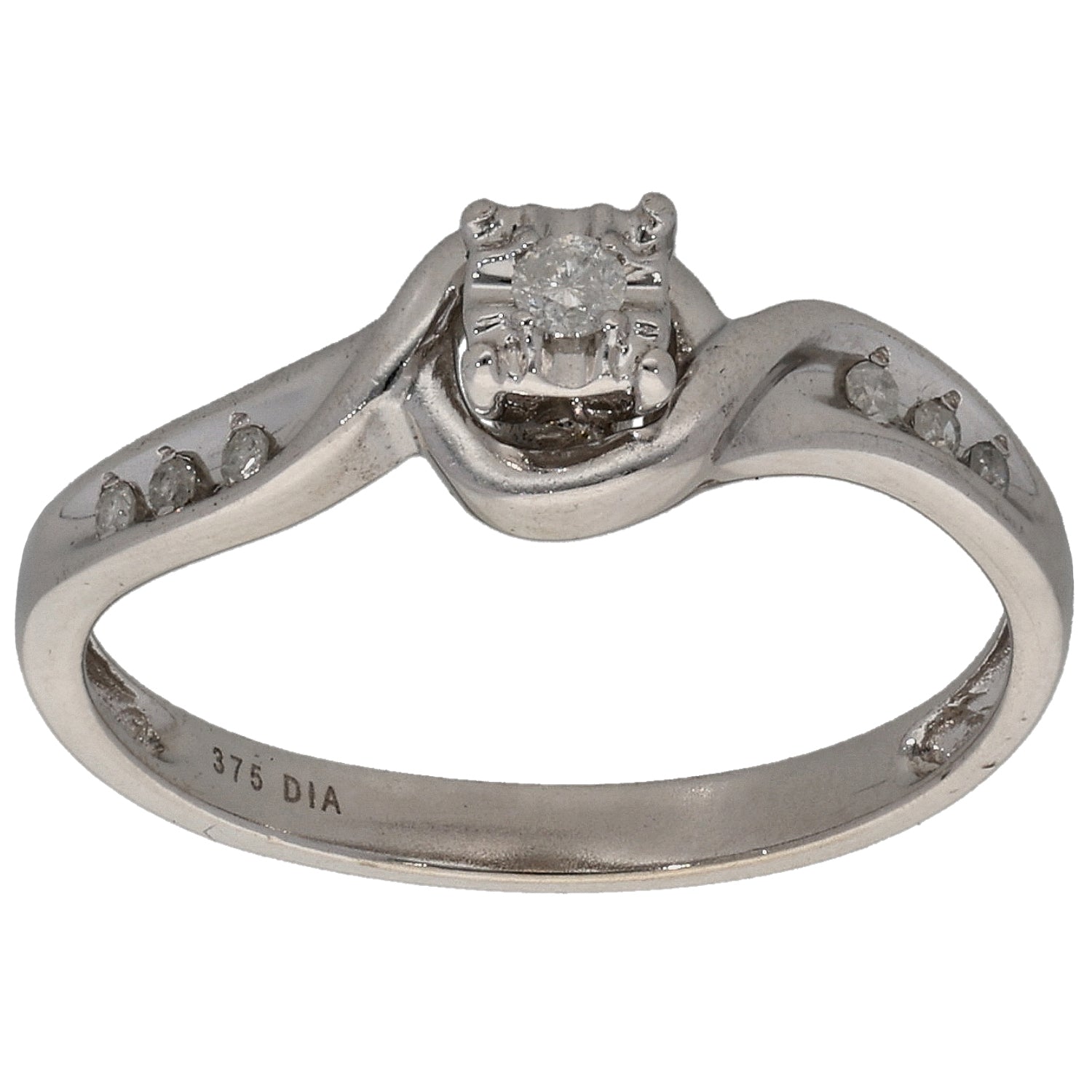9ct White Gold 0.06ct Diamond Solitaire Ring With Accent Stones Size K