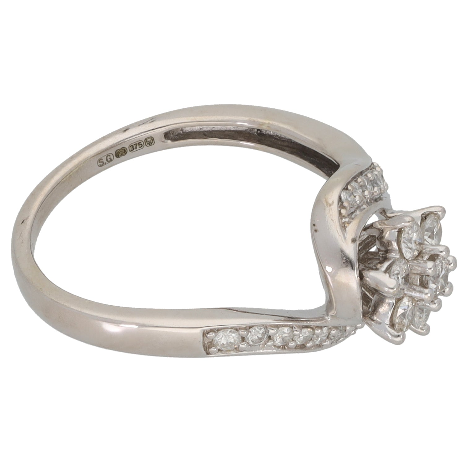 9ct White Gold 0.40ct Diamond Cluster Ring Size M