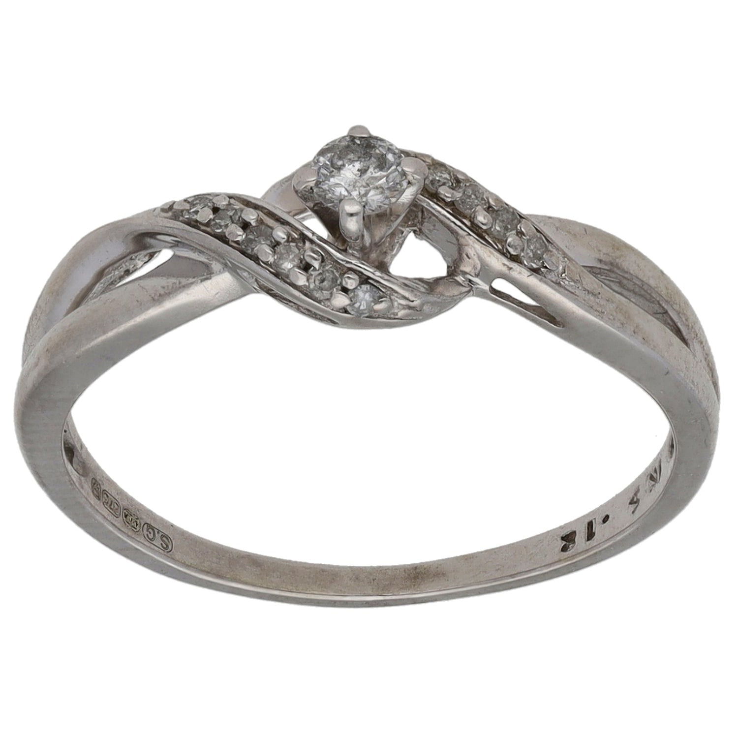 9ct White Gold 0.12ct Diamond Solitaire Ring With Accent Stones Size M