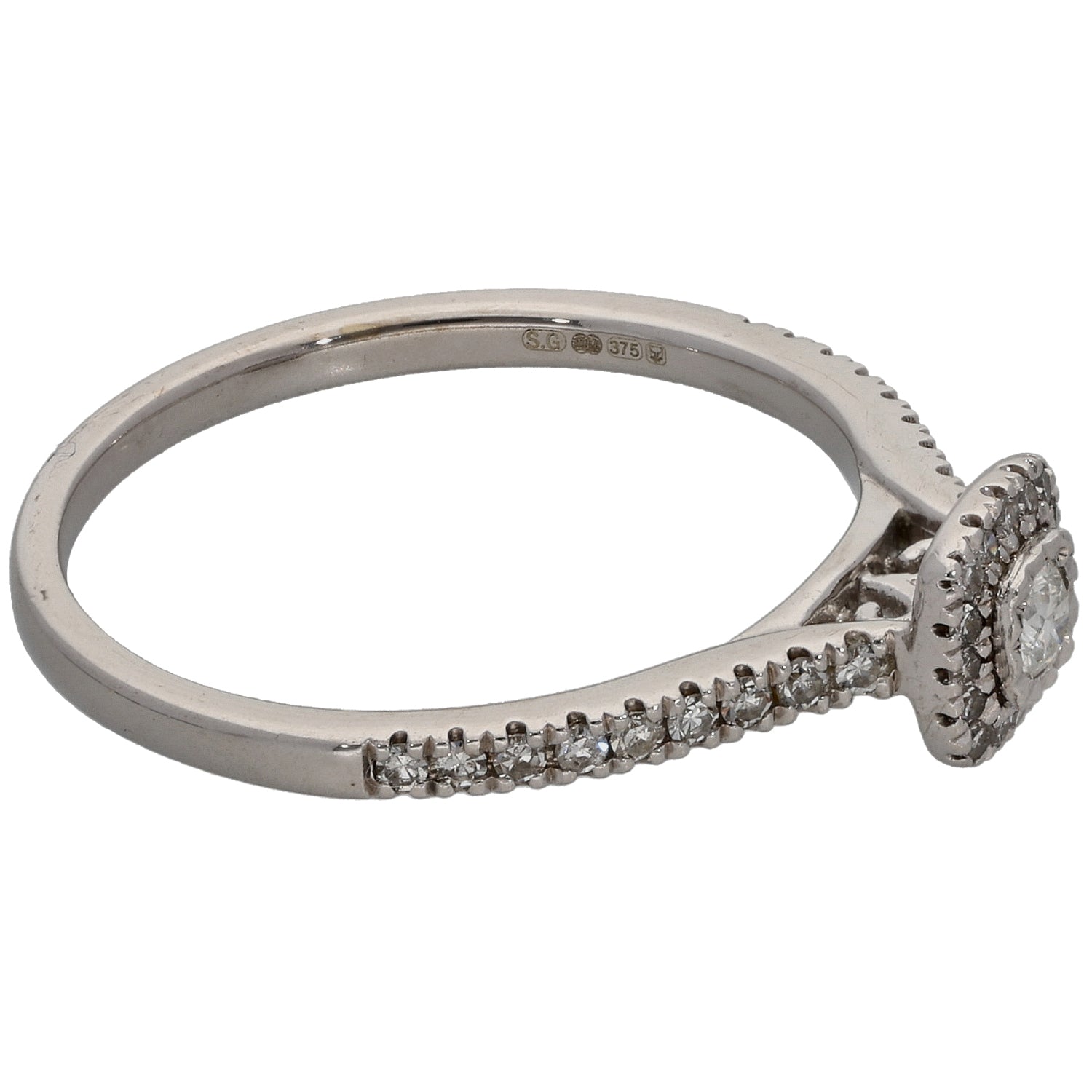 9ct White Gold 0.26ct Diamond Solitaire Ring With Accent Stones Size O