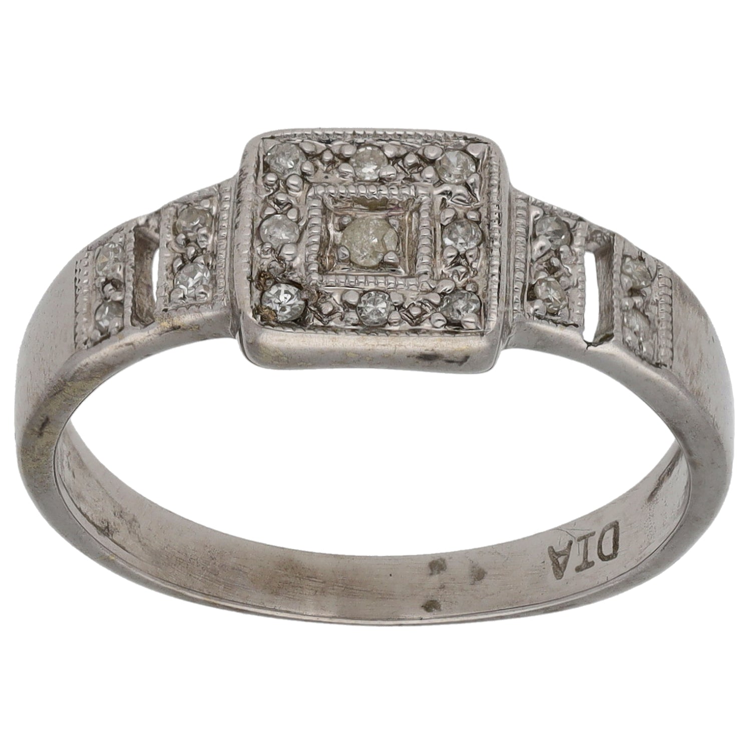 9ct White Gold 0.17ct Diamond Dress/Cocktail Ring Size O