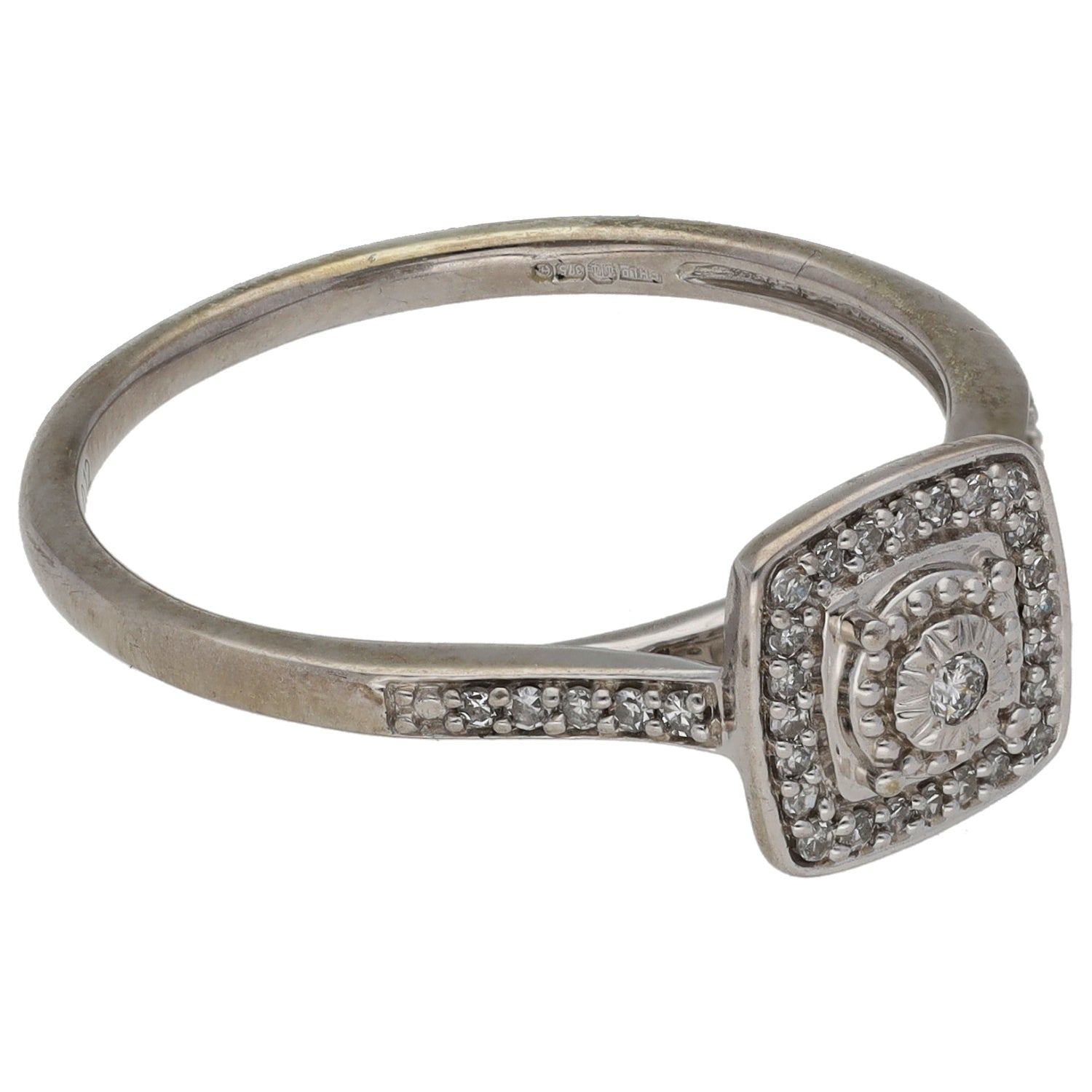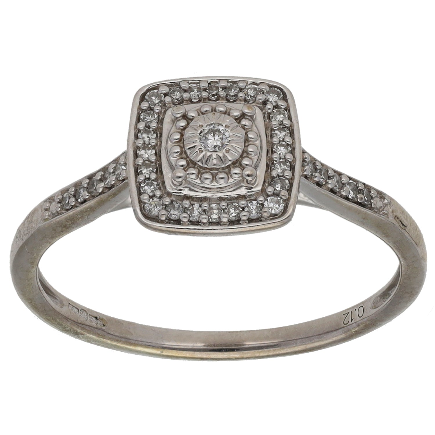 9ct White Gold 0.18ct Diamond Halo Ring Size O