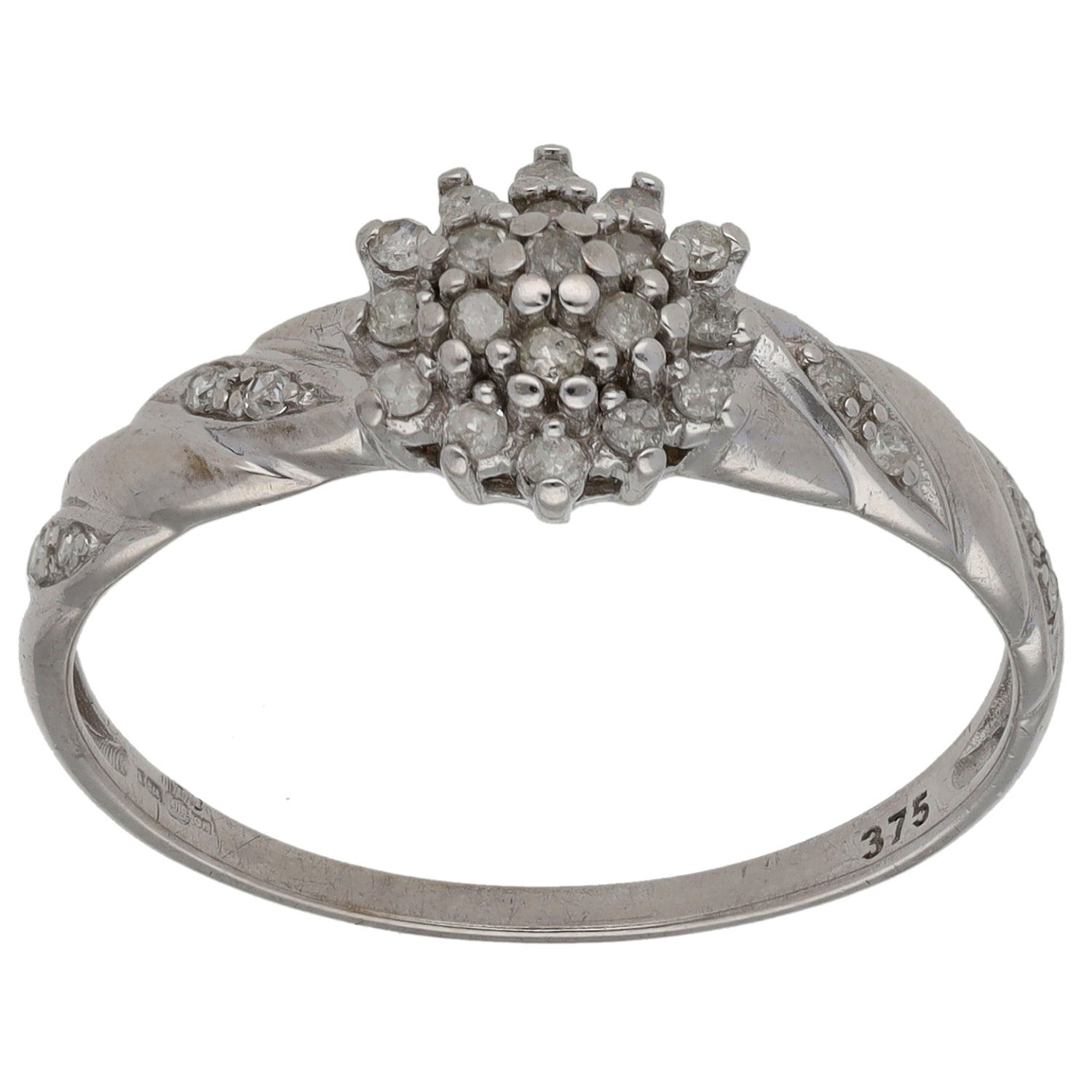 9ct White Gold 0.27ct Diamond Cluster Ring Size U