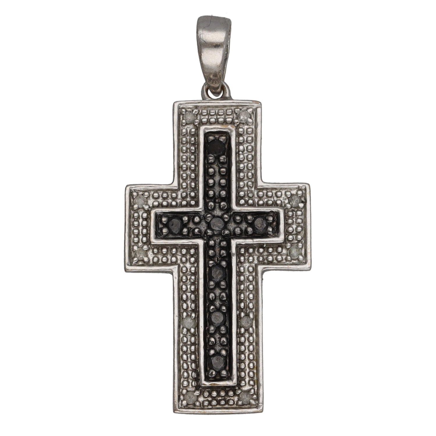 9ct White Gold 0.05ct Diamond Cross Pendant