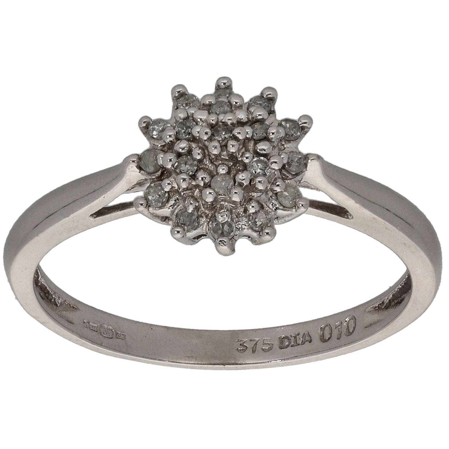 9ct White Gold 0.095ct Diamond Cluster Ring Size N