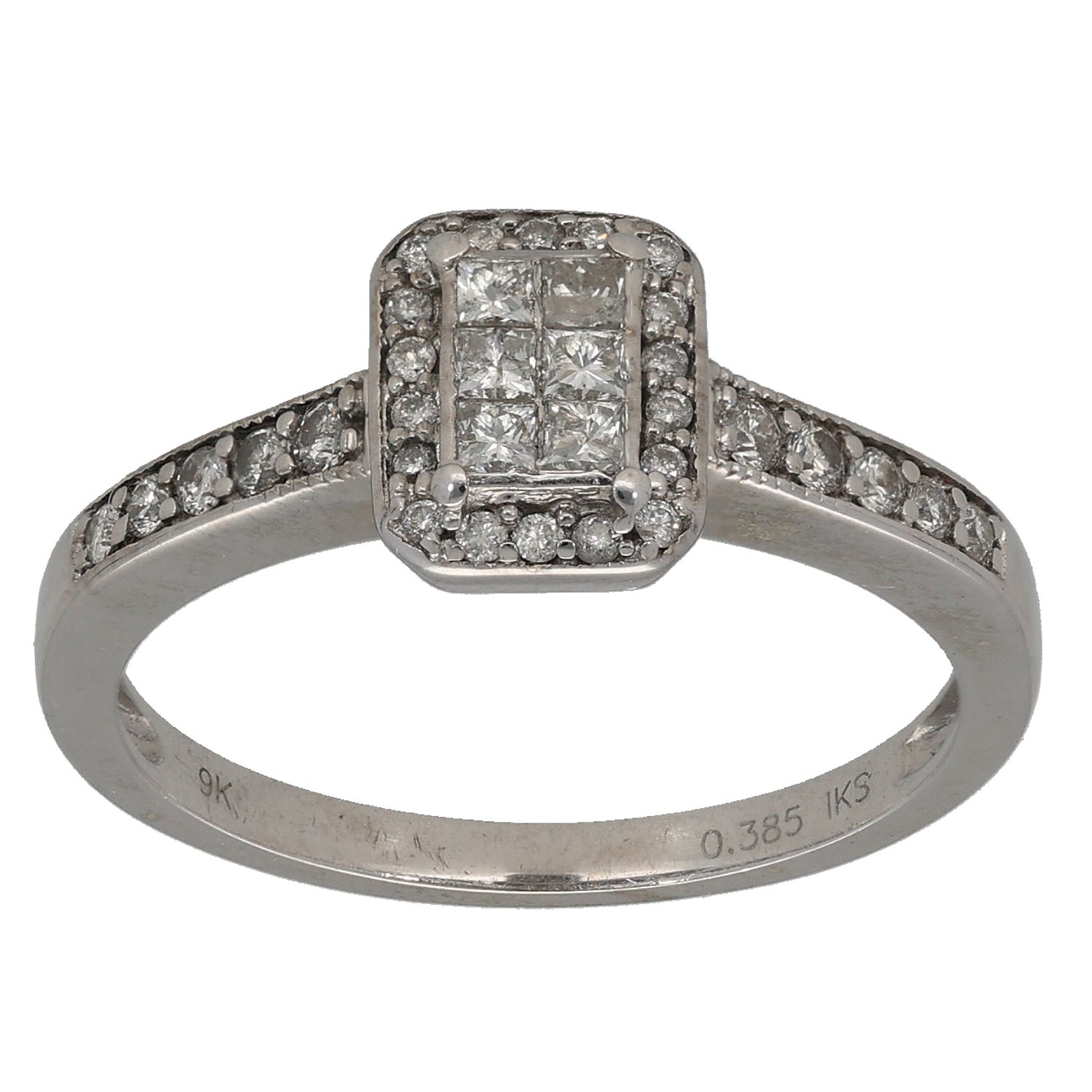 9ct White Gold 0.385ct Diamond Dress/Cocktail Ring Size O