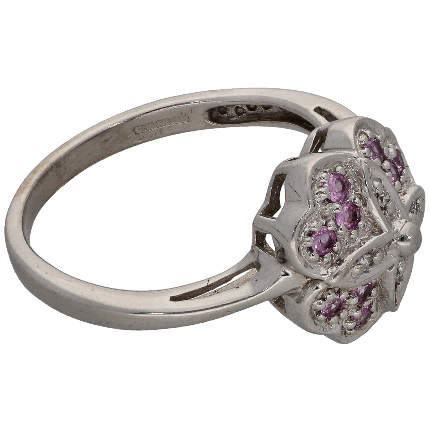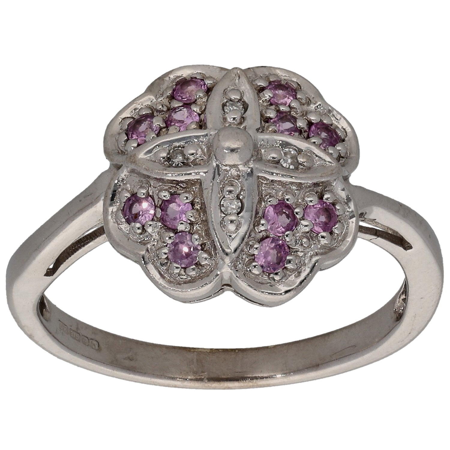 9ct White Gold 0.02ct Diamond & Sapphire Dress/Cocktail Ring Size N