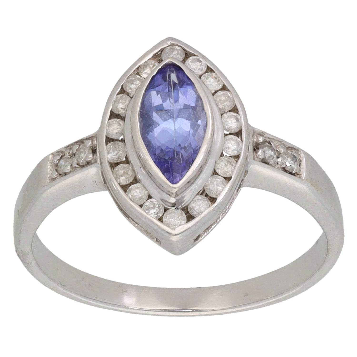 9ct White Gold 0.22ct Diamond & Tanzanite Dress/Cocktail Ring Size N