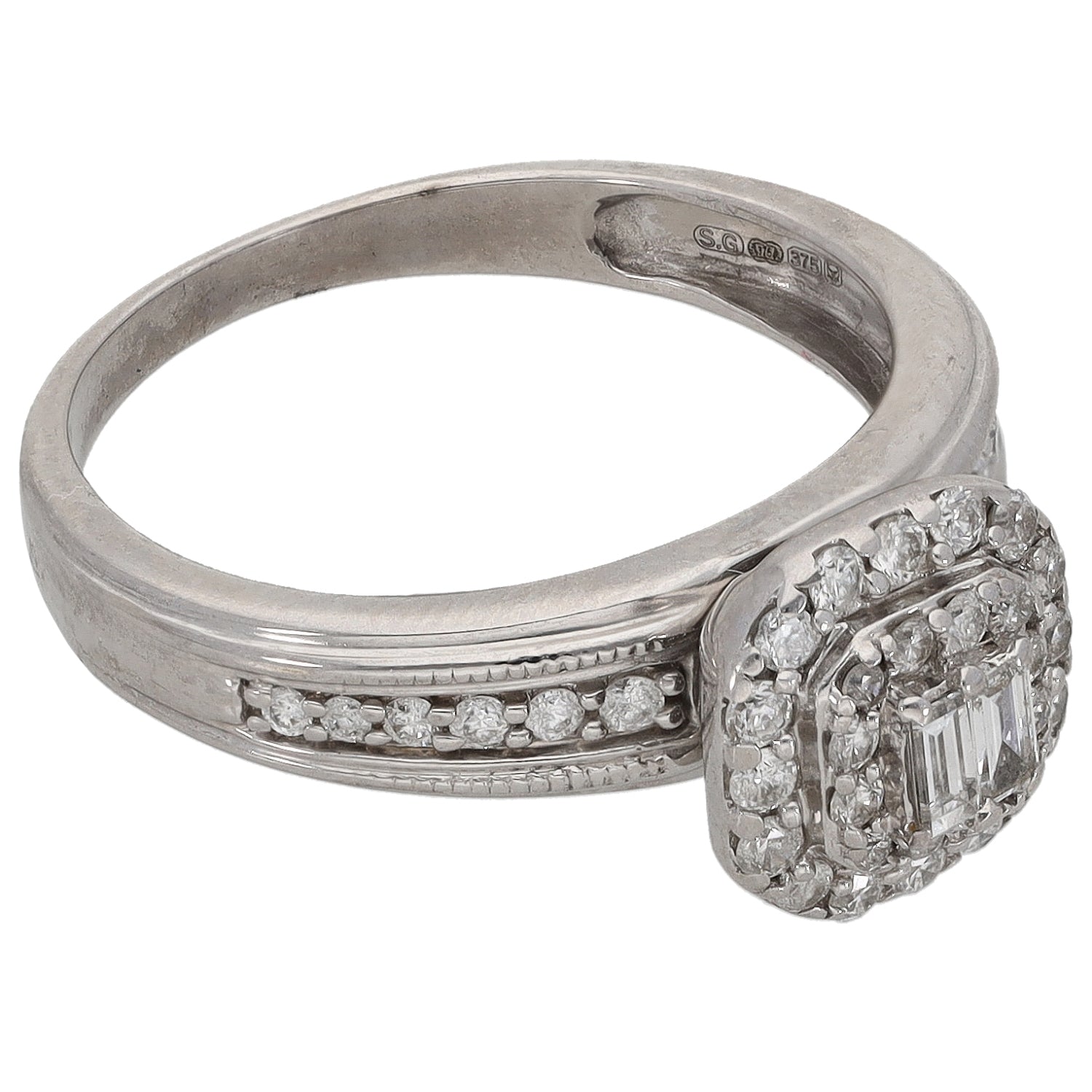 9ct White Gold 0.58ct Diamond Dress/Cocktail Ring Size L
