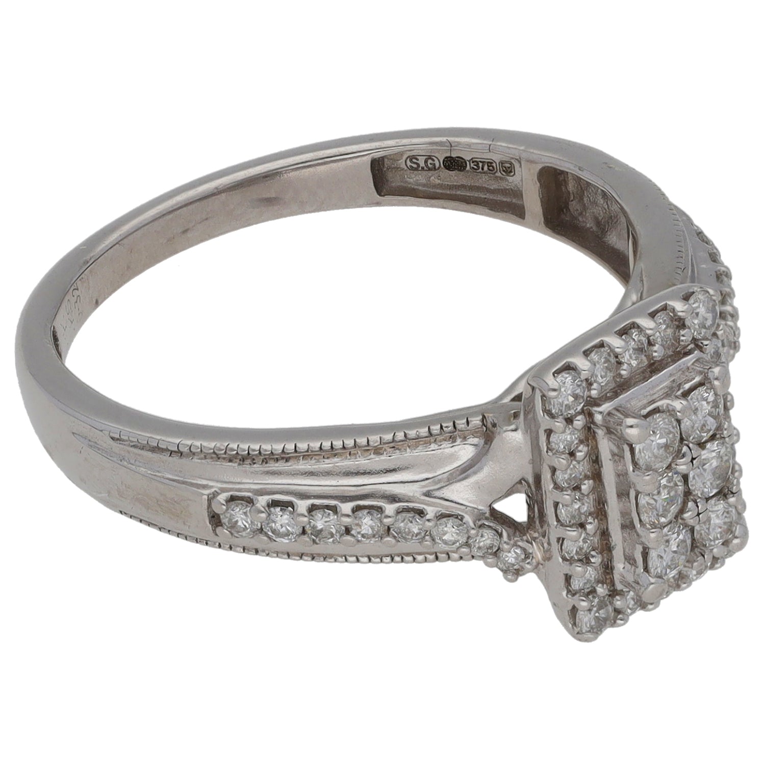9ct White Gold 0.32ct Diamond Cluster Ring Size N