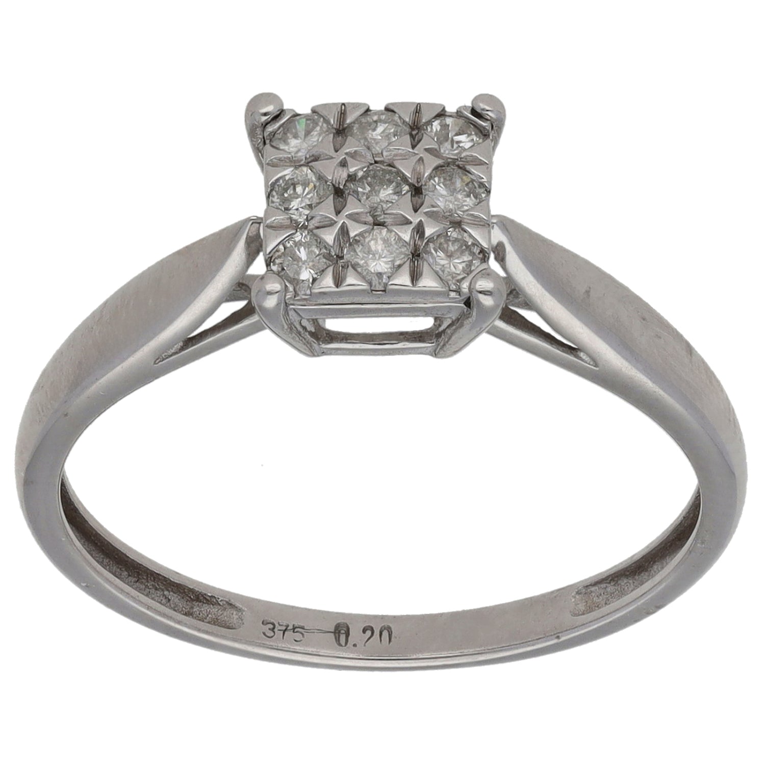 9ct White Gold 0.20ct Diamond Cluster Ring Size M