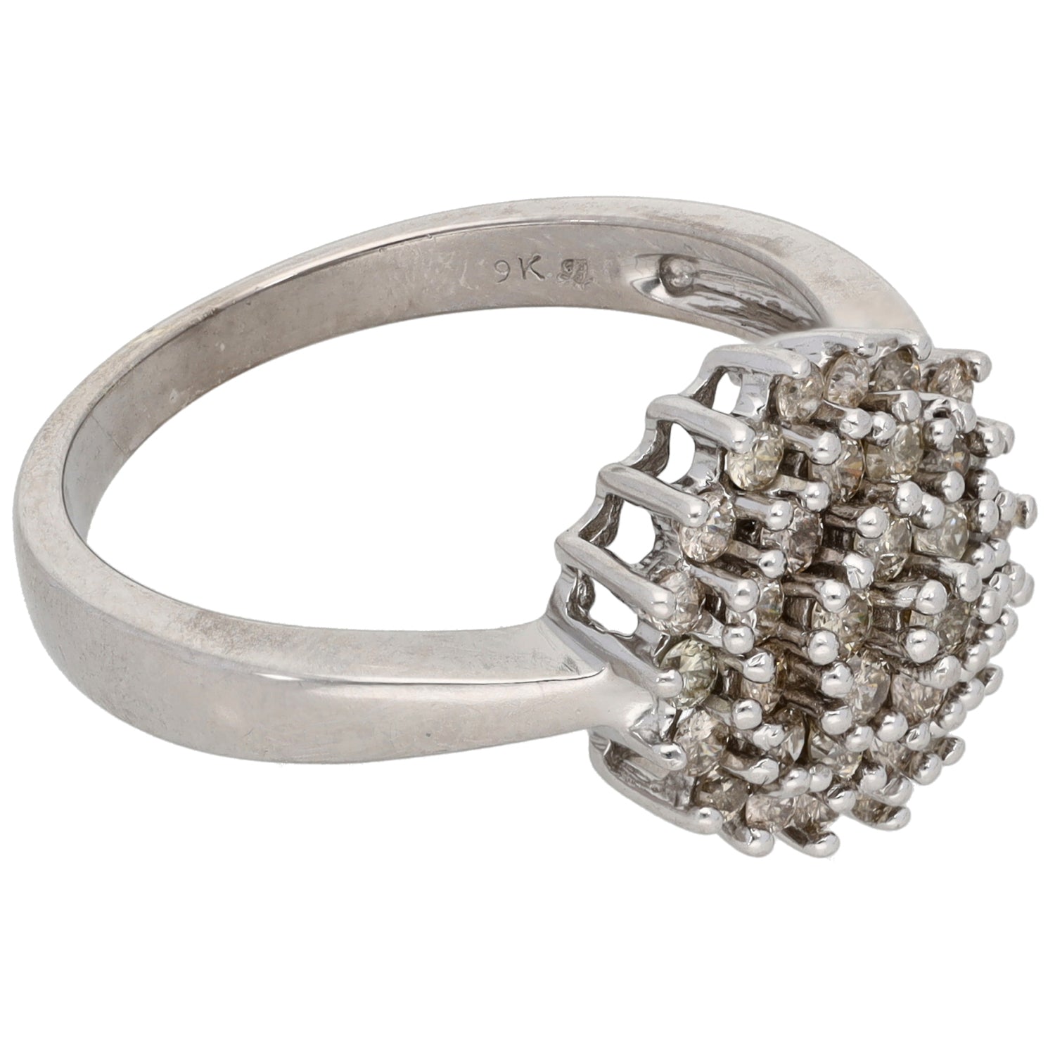 9ct White Gold 0.74ct Diamond Cluster Ring Size U