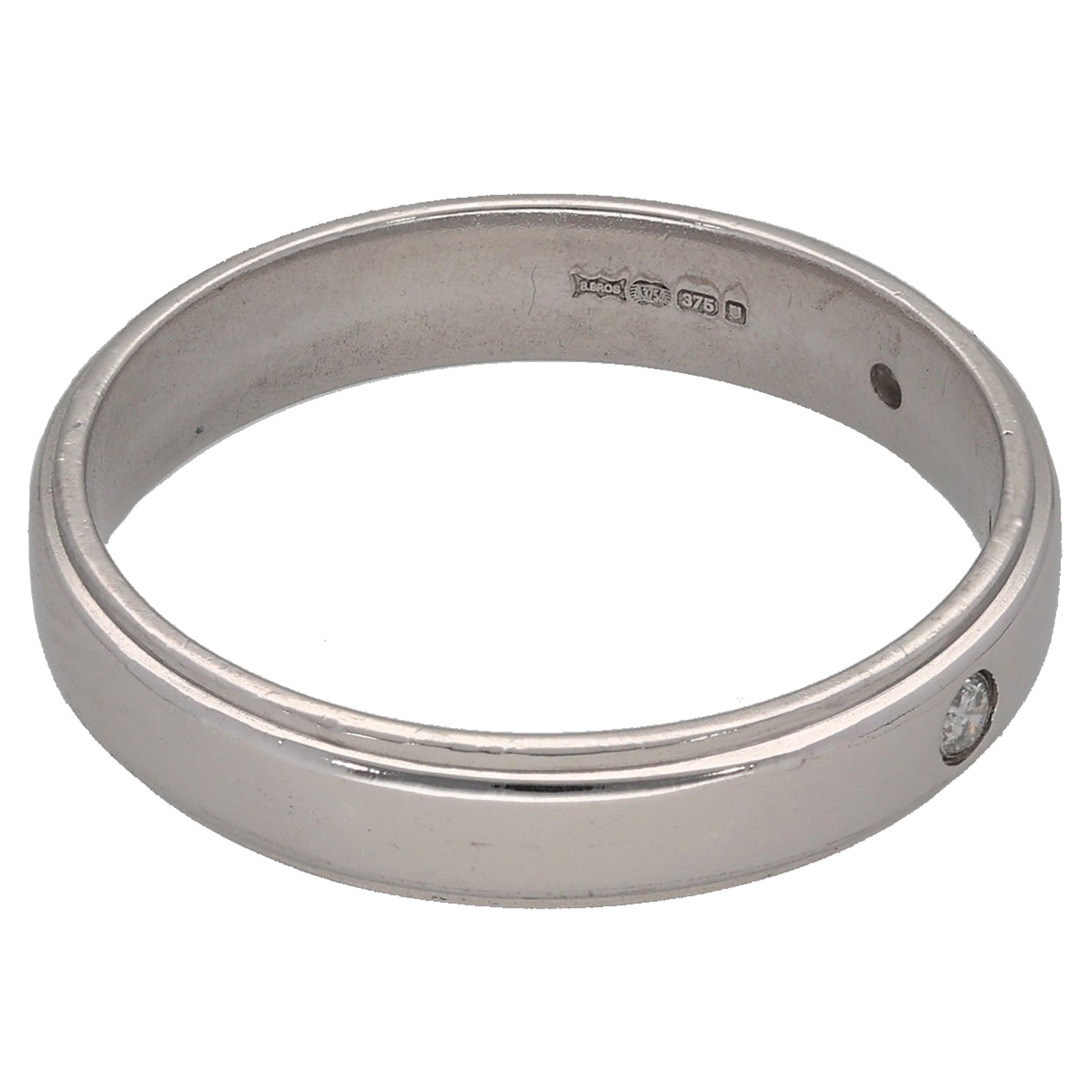 9ct White Gold 0.06ct Diamond Patterned Wedding Ring Size R