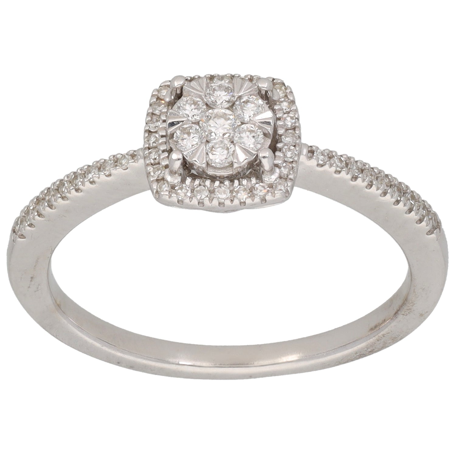 9ct White Gold 0.20ct Diamond Cluster Ring Size M
