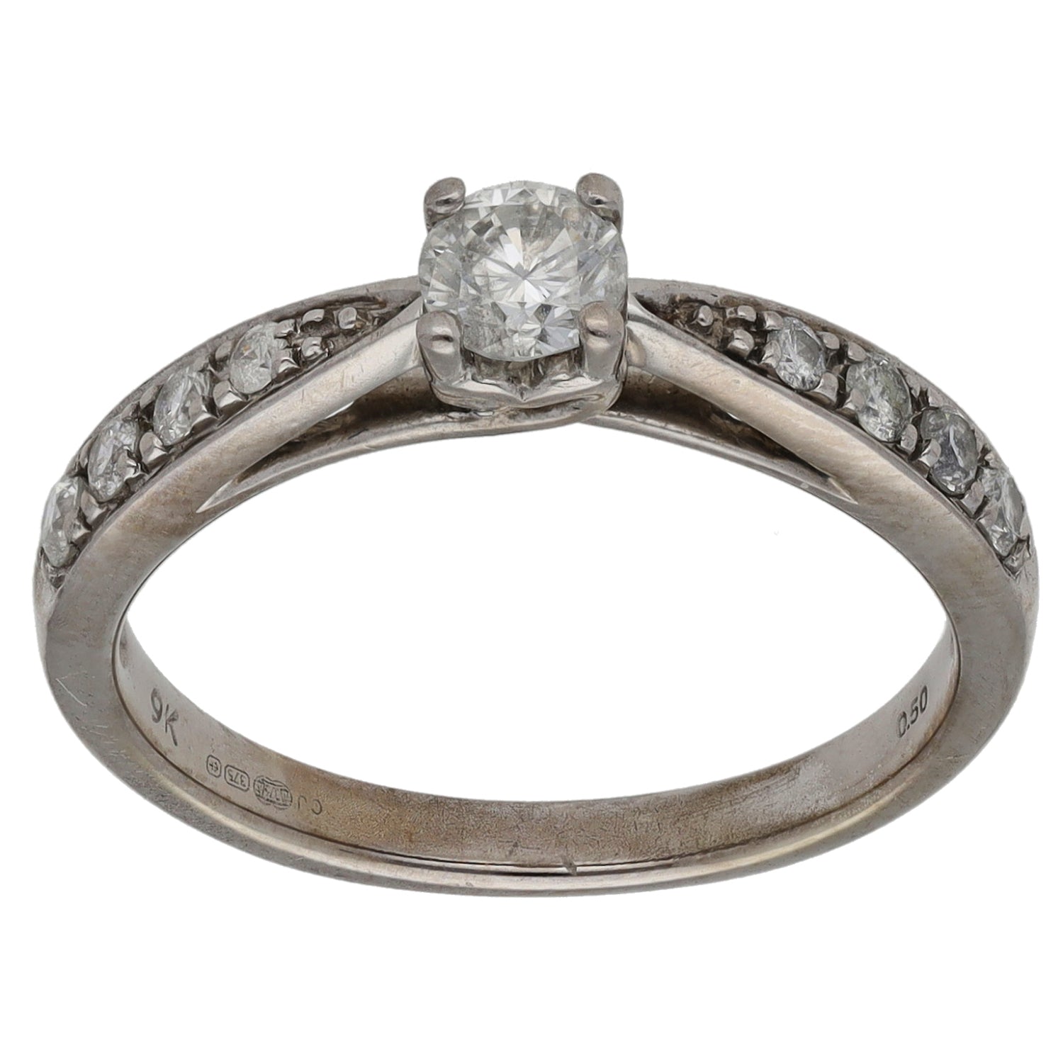 9ct White Gold 0.50ct Diamond Solitaire Ring With Accent Stones Size N