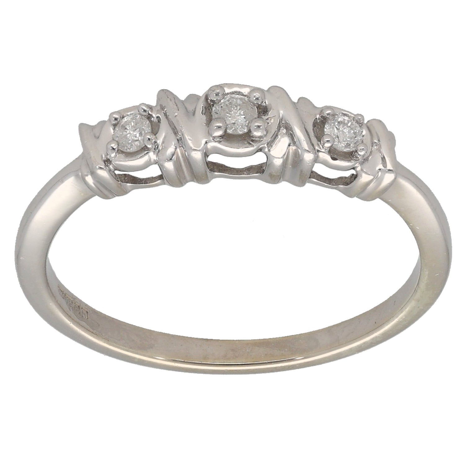 9ct White Gold 0.07ct Diamond Trilogy Ring Size N