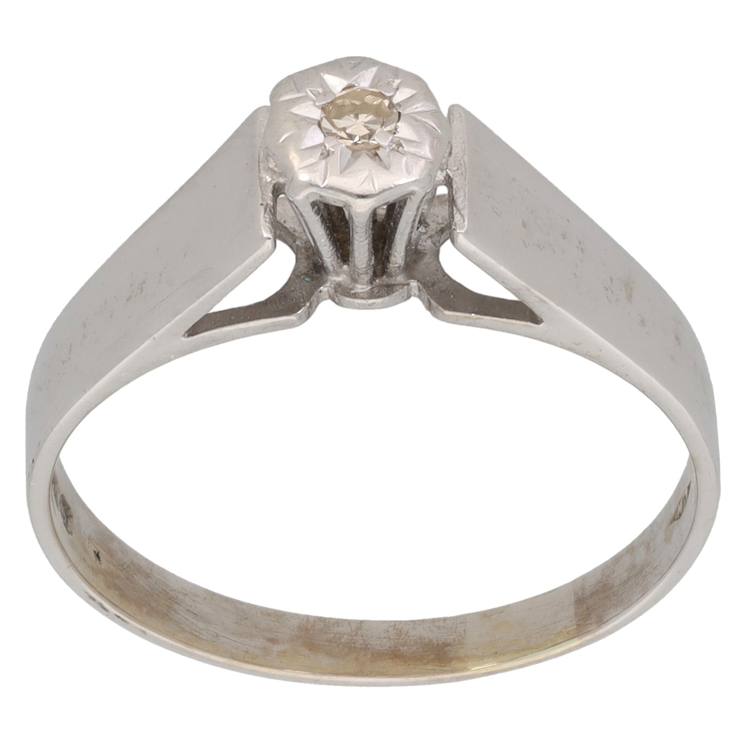 9ct White Gold 0.03ct Diamond Solitaire Ring Size R