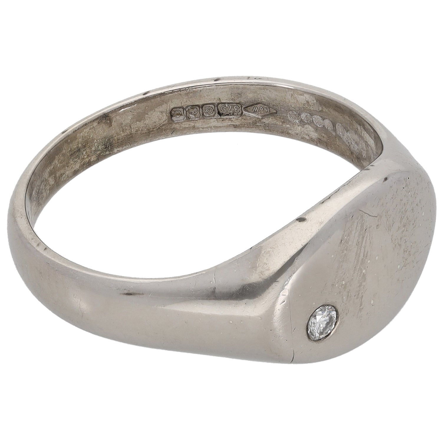 9ct White Gold 0.04ct Diamond Signet Ring Size V