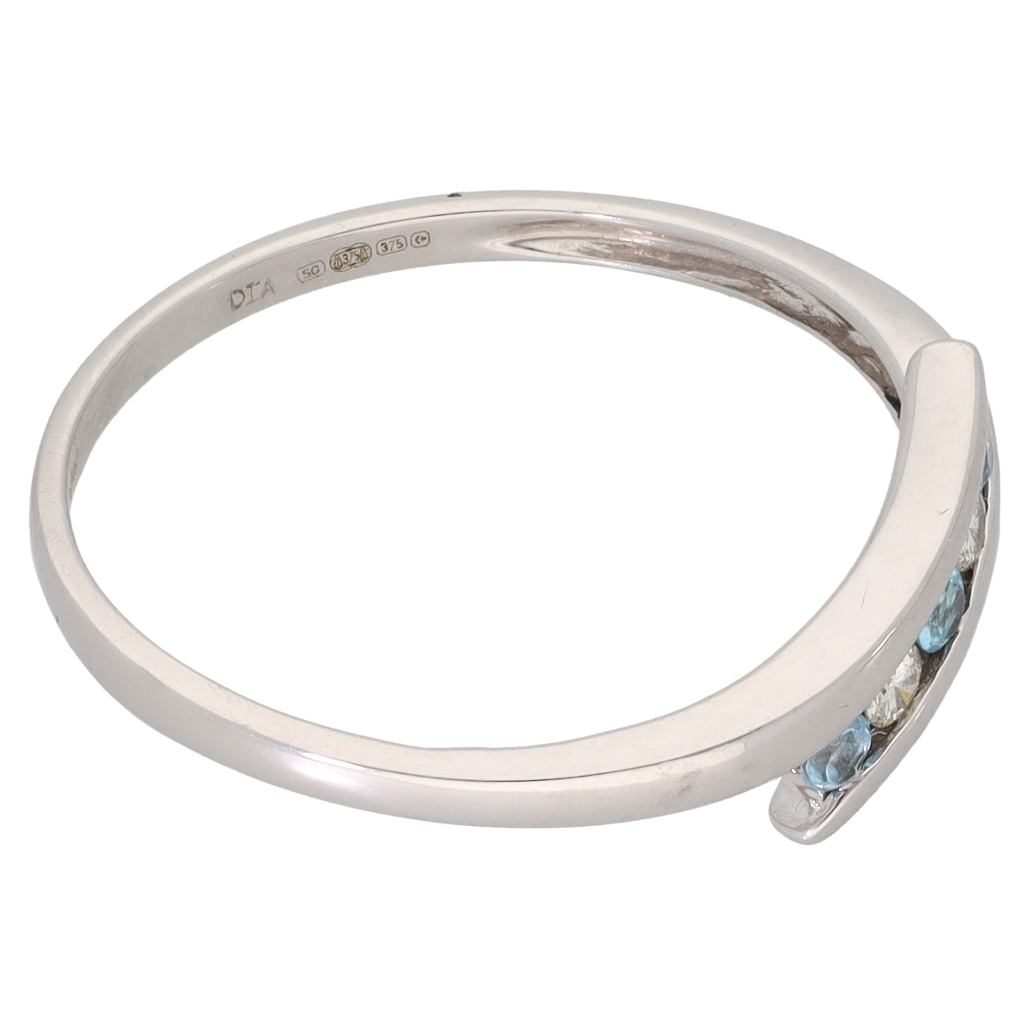 9ct White Gold 0.08ct Diamond & Topaz Half Eternity Ring Size S