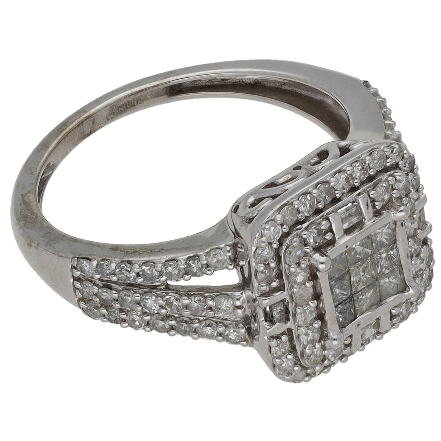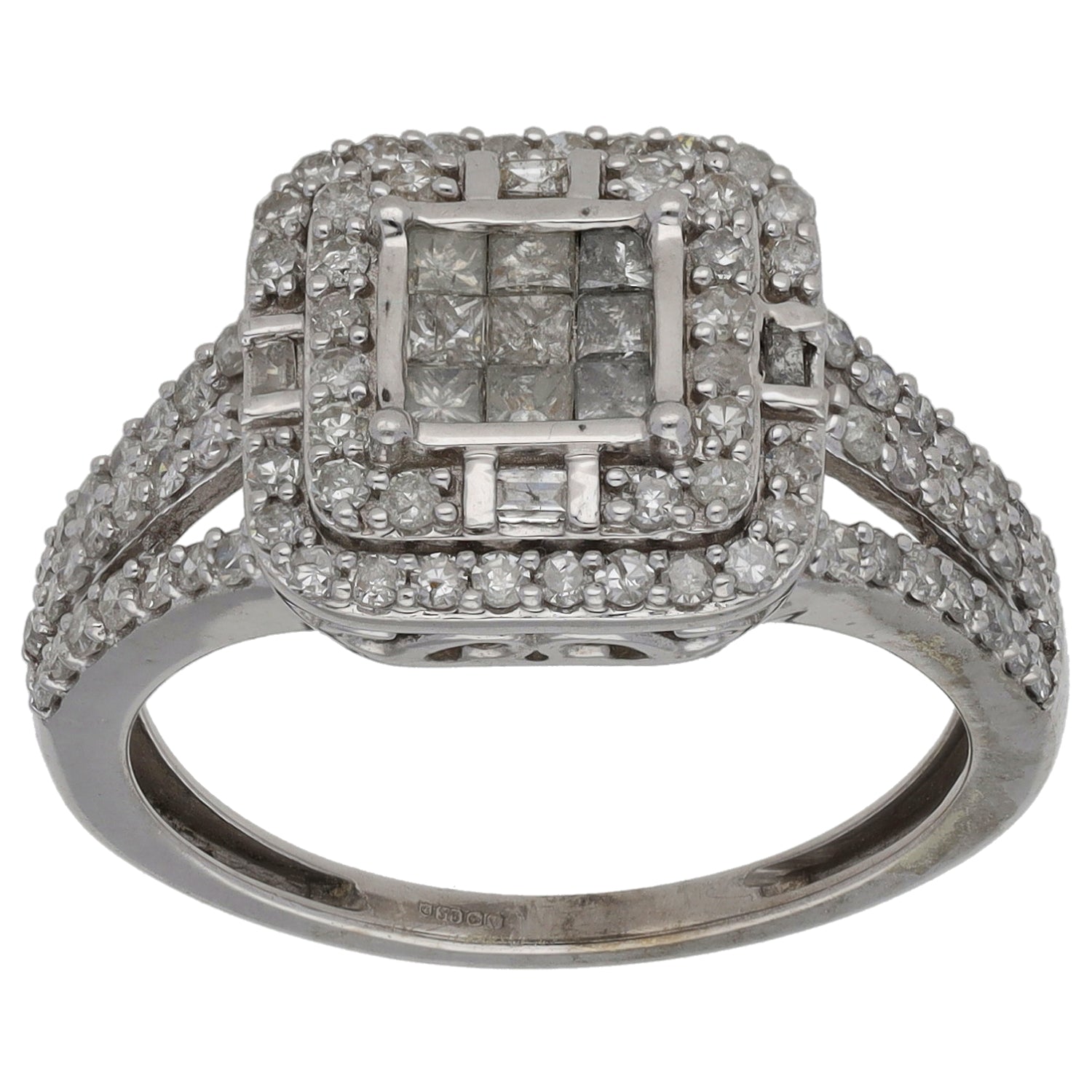 9ct White Gold 0.79ct Diamond Dress/Cocktail Ring Size N