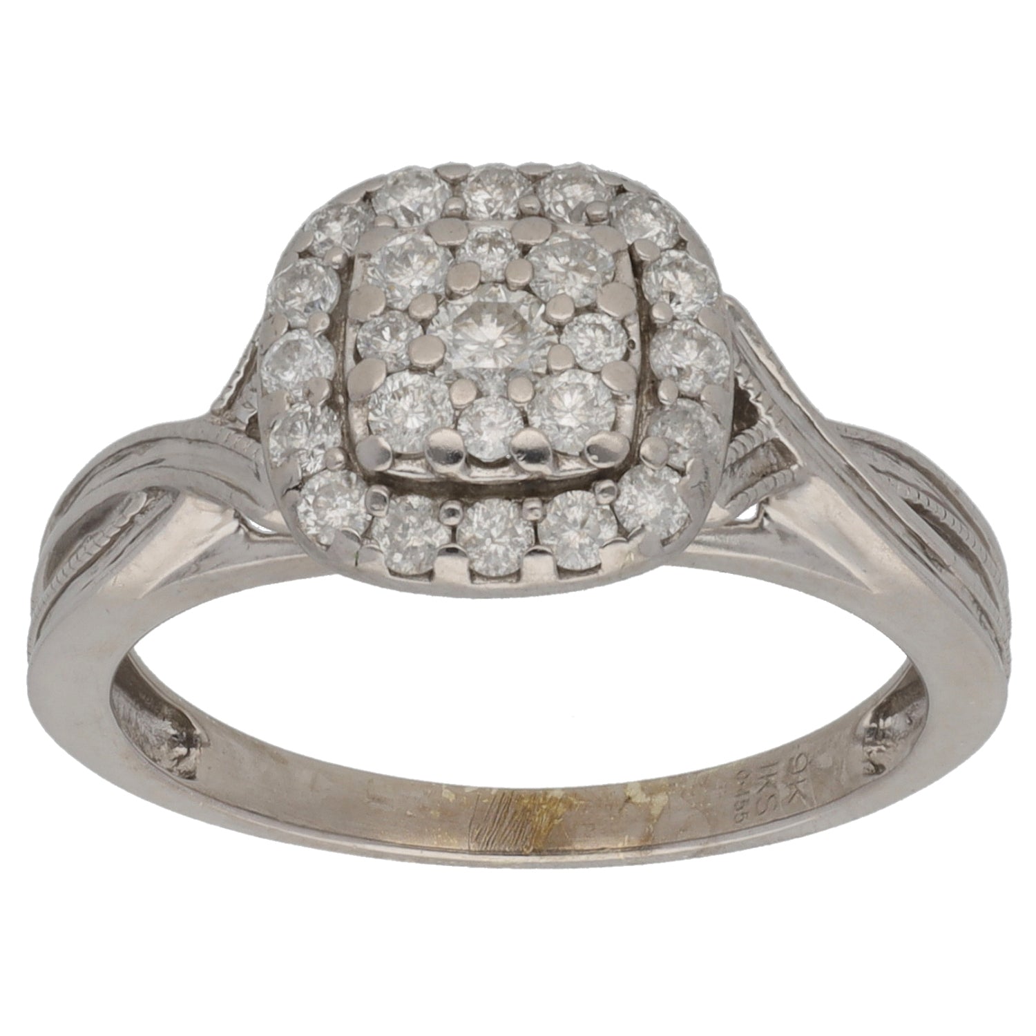 9ct White Gold 0.455ct Diamond Cluster Ring Size N