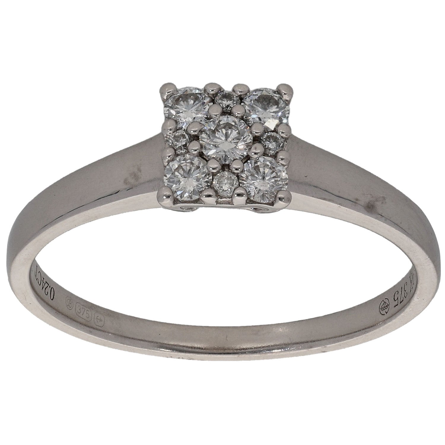 9ct White Gold 0.24ct Diamond Cluster Ring Size Q
