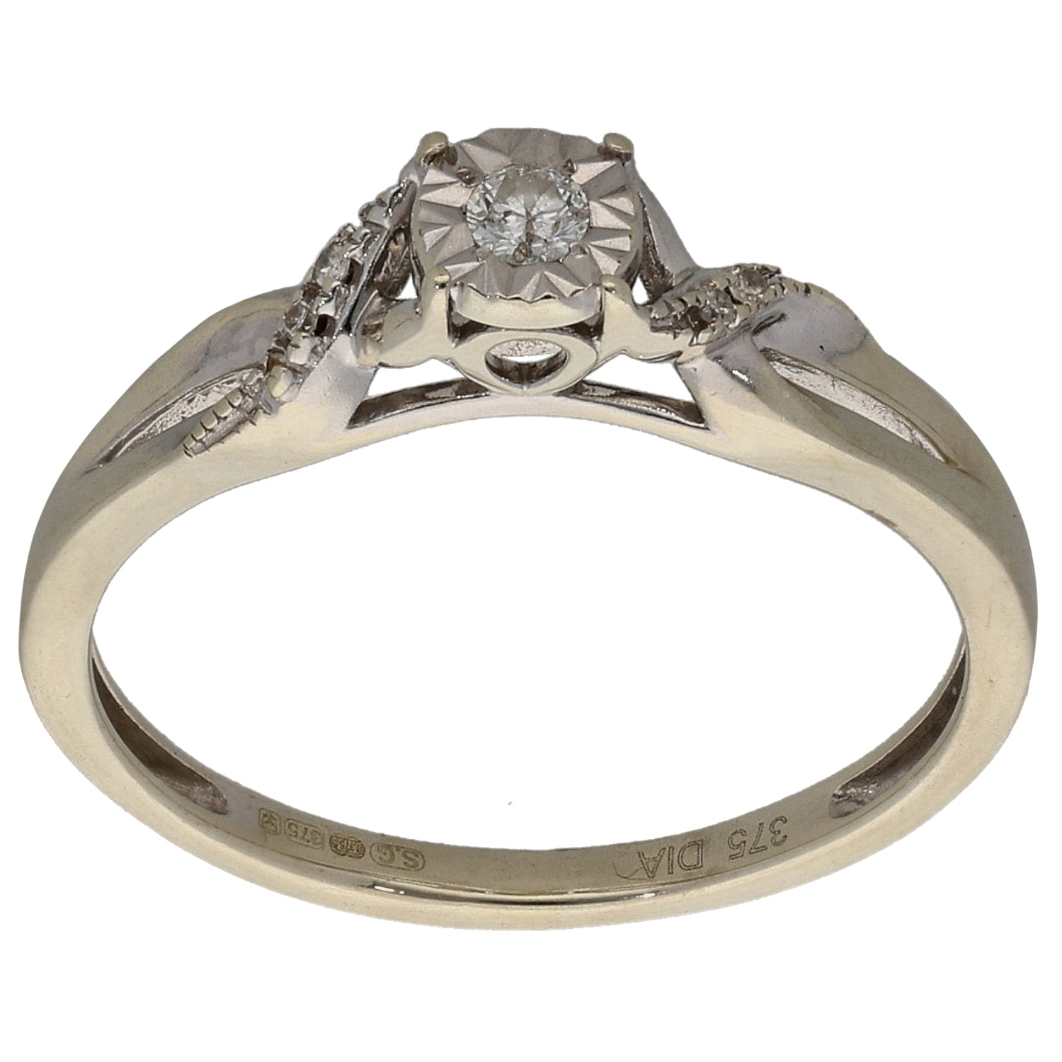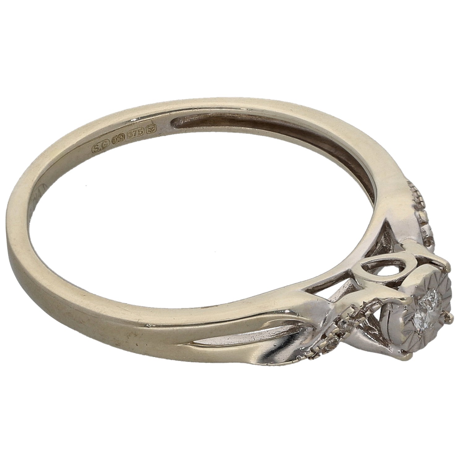 9ct White Gold 0.07ct Diamond Solitaire Ring With Accent Stones Size M