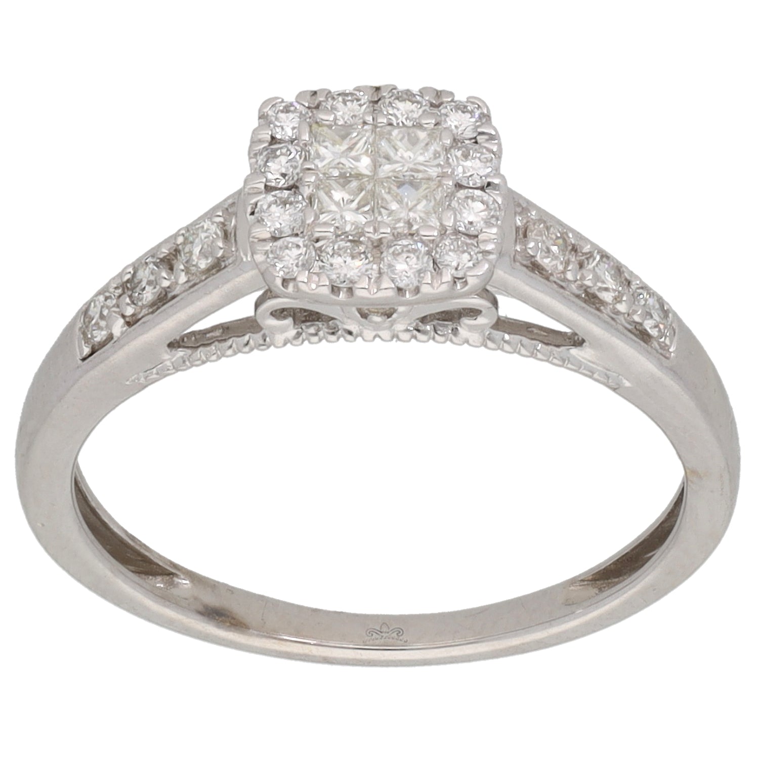9ct White Gold 0.41ct Diamond Cluster Ring Size K