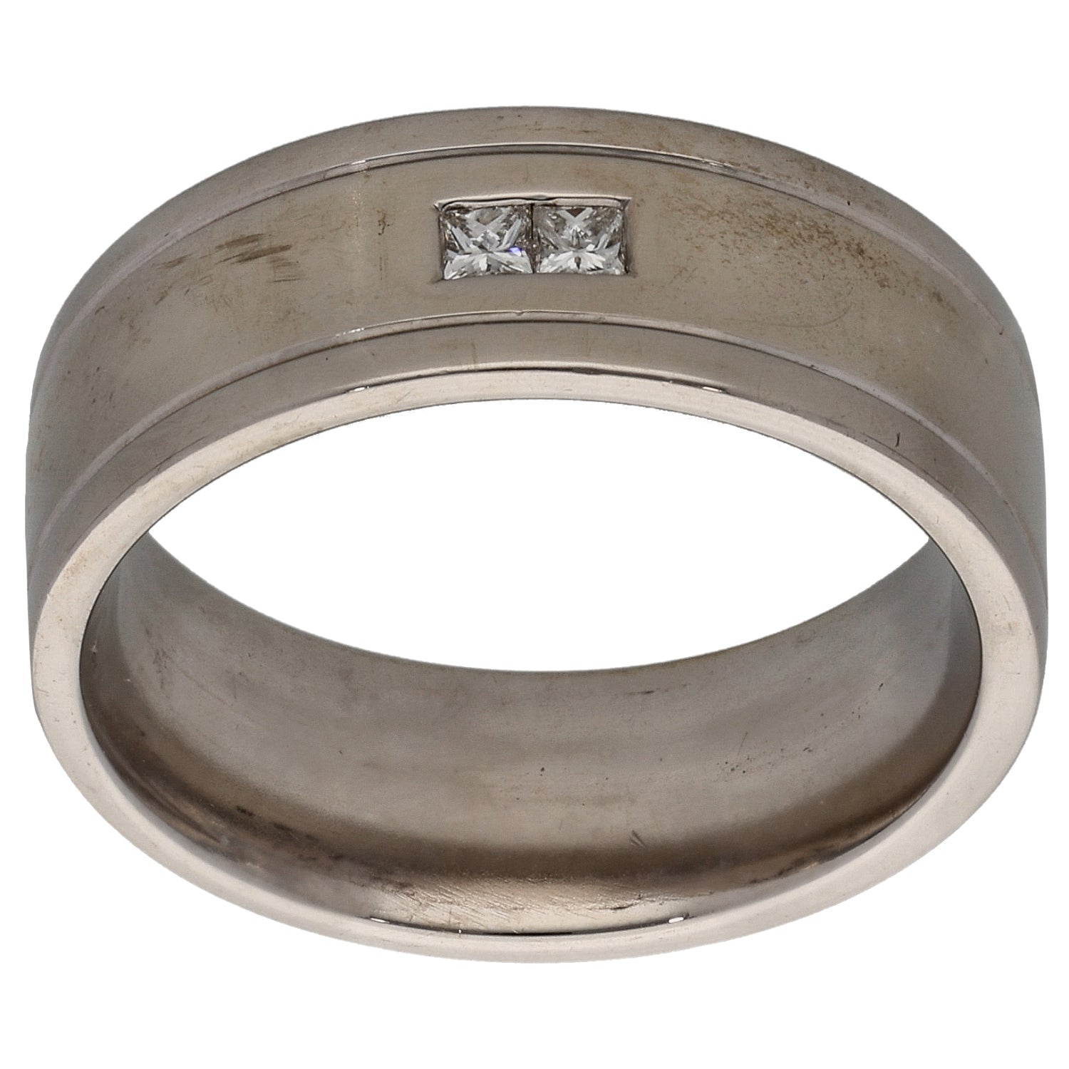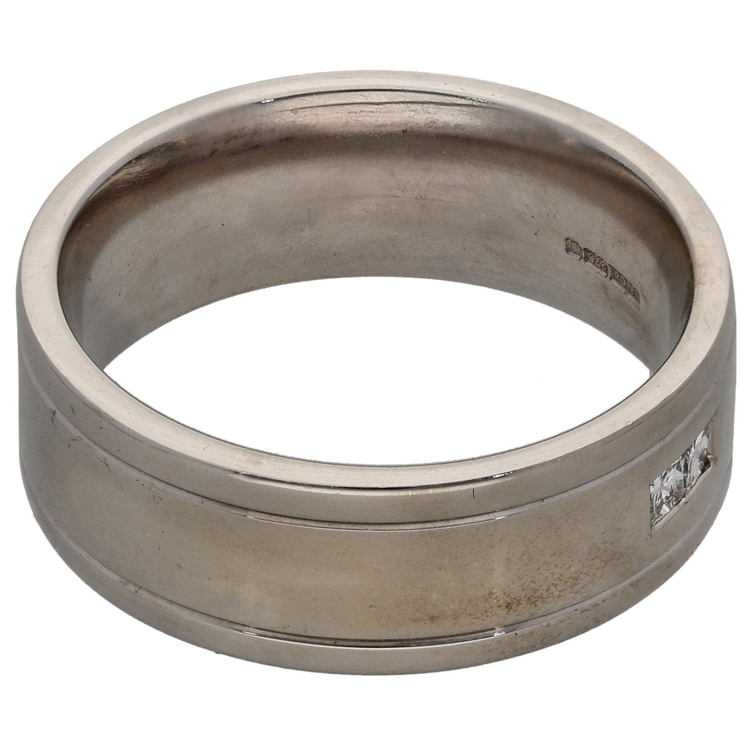 9ct White Gold 0.12ct Diamond Patterned Wedding Ring Size S