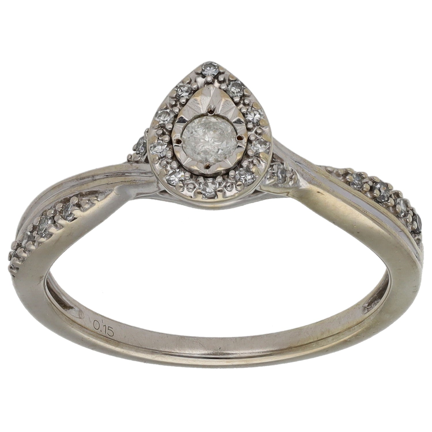 9ct White Gold 0.17ct Diamond Dress/Cocktail Ring Size M