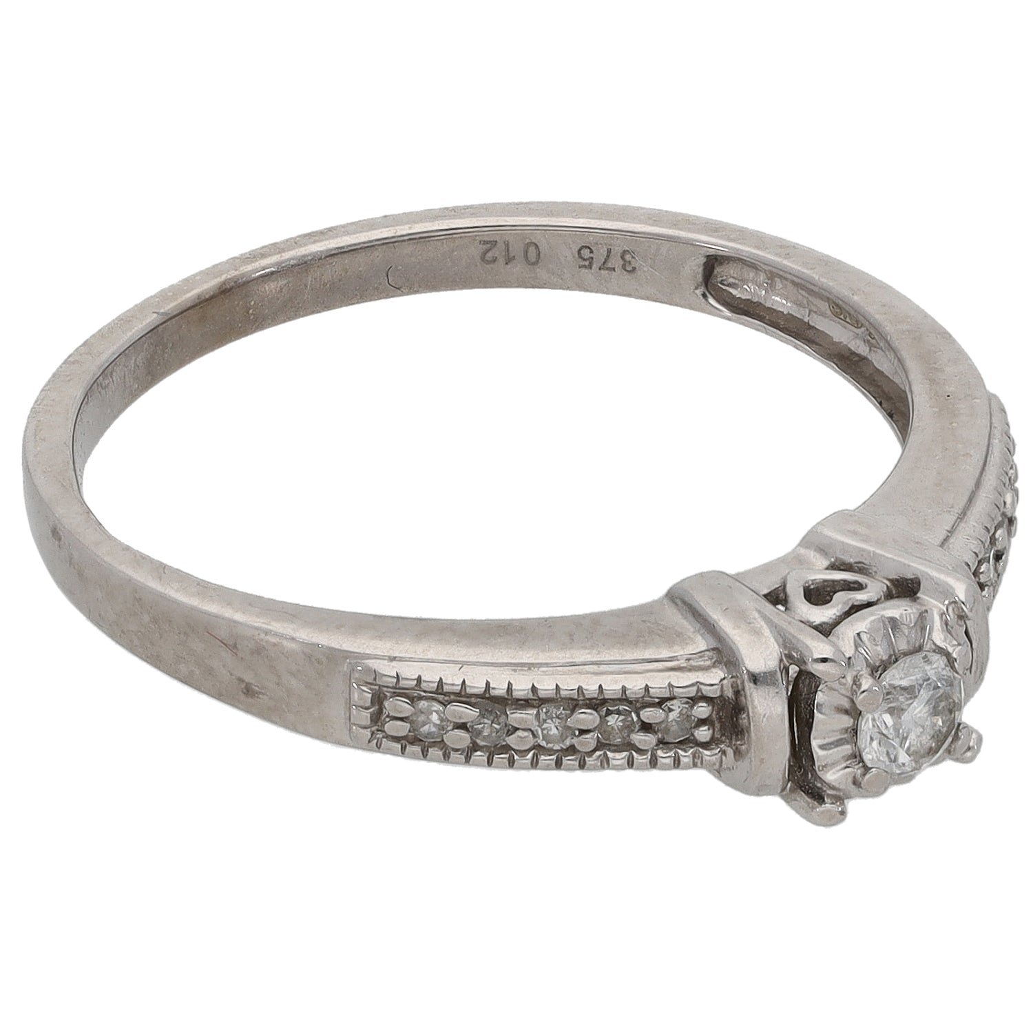 9ct White Gold 0.12ct Diamond Solitaire Ring With Accent Stones Size O
