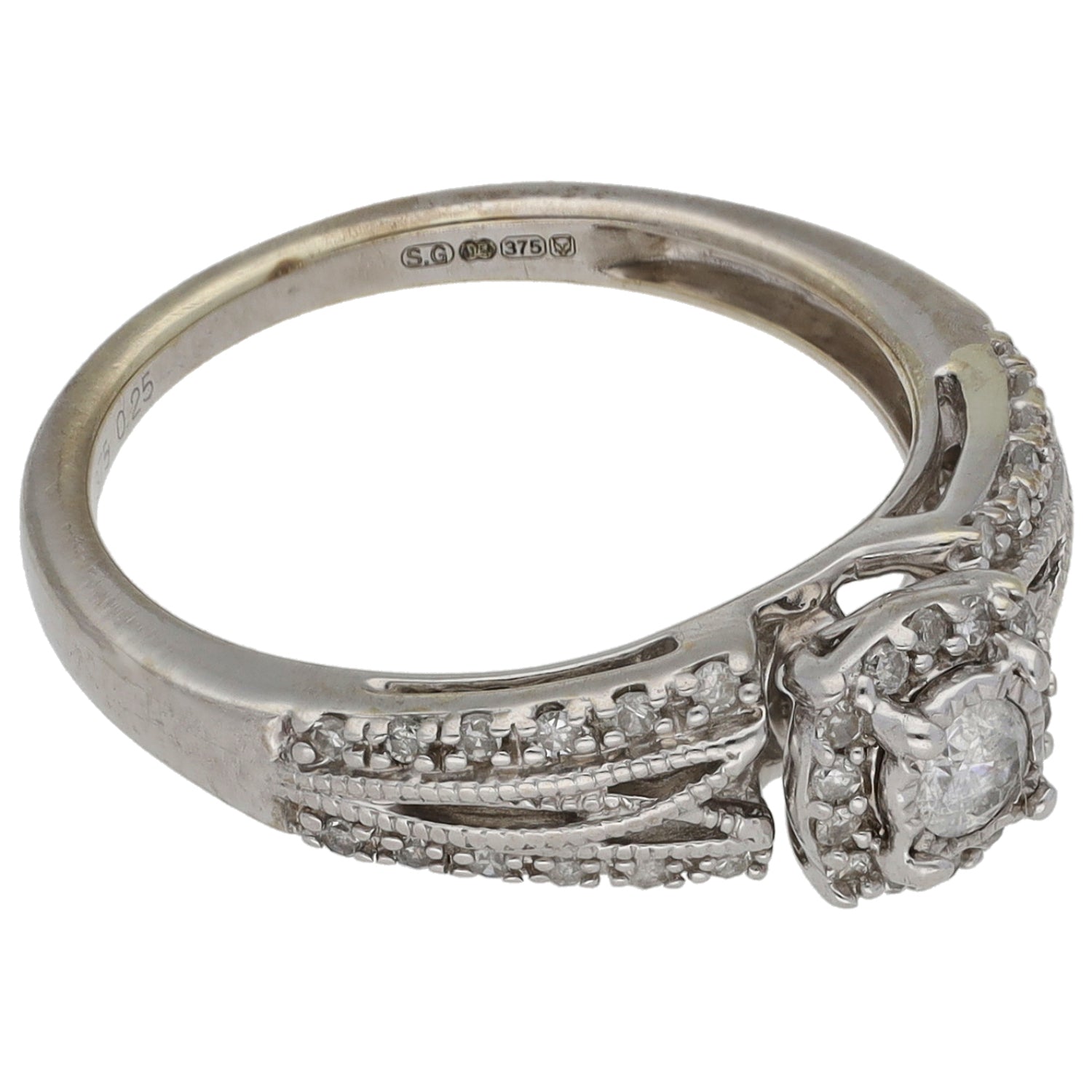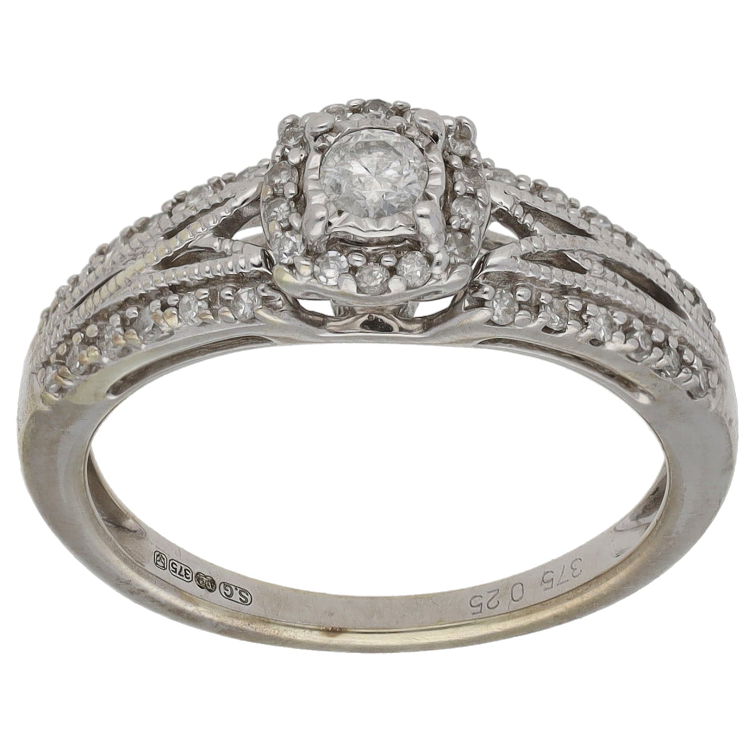 9ct White Gold 0.25ct Diamond Cluster Ring Size K
