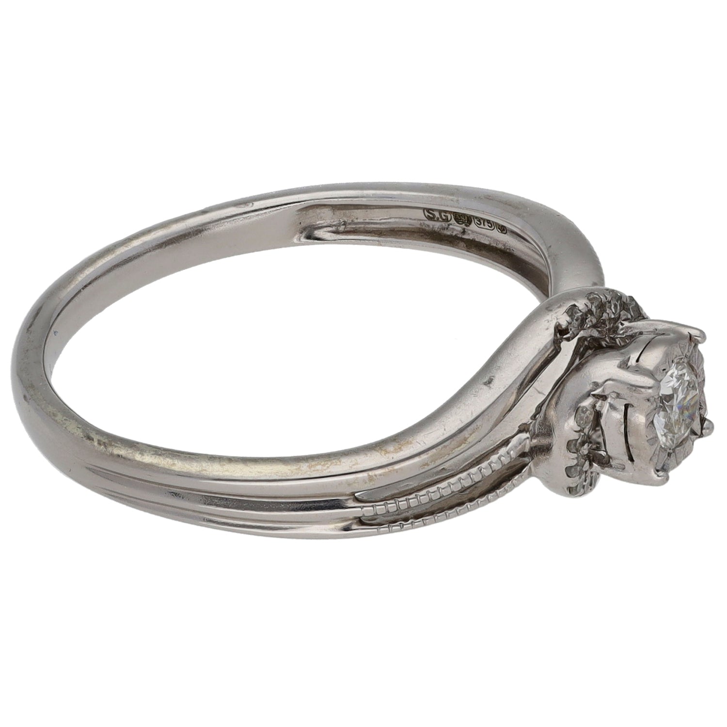 9ct White Gold 0.15ct Diamond Solitaire Ring With Accent Stones Size M