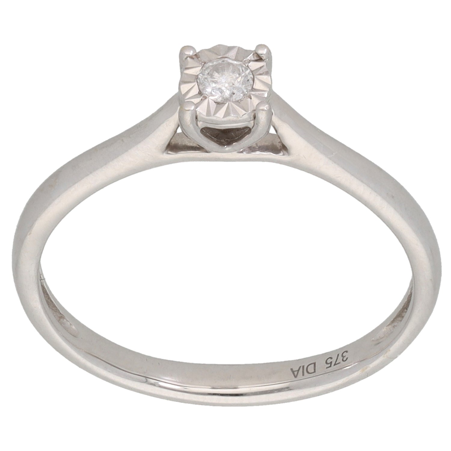 9ct White Gold 0.08ct Diamond Solitaire Ring Size N