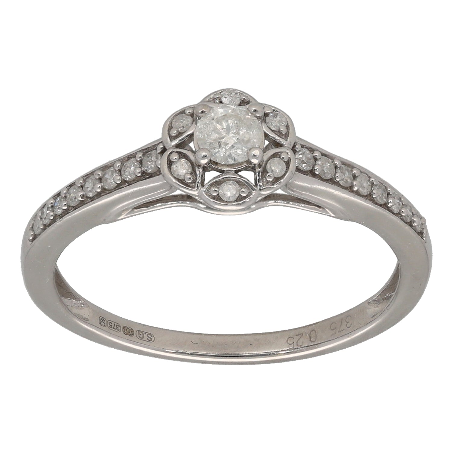 9ct White Gold 0.25ct Diamond Dress/Cocktail Ring Size K