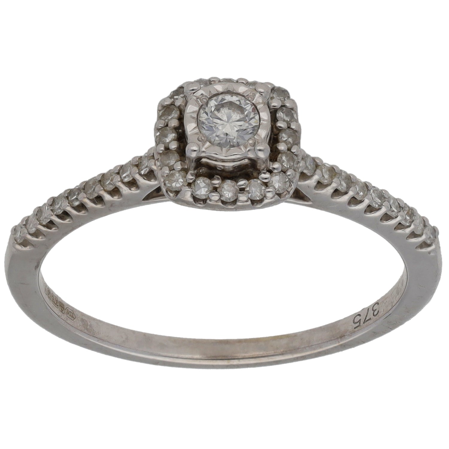 9ct White Gold 0.27ct Diamond Cluster Ring Size N
