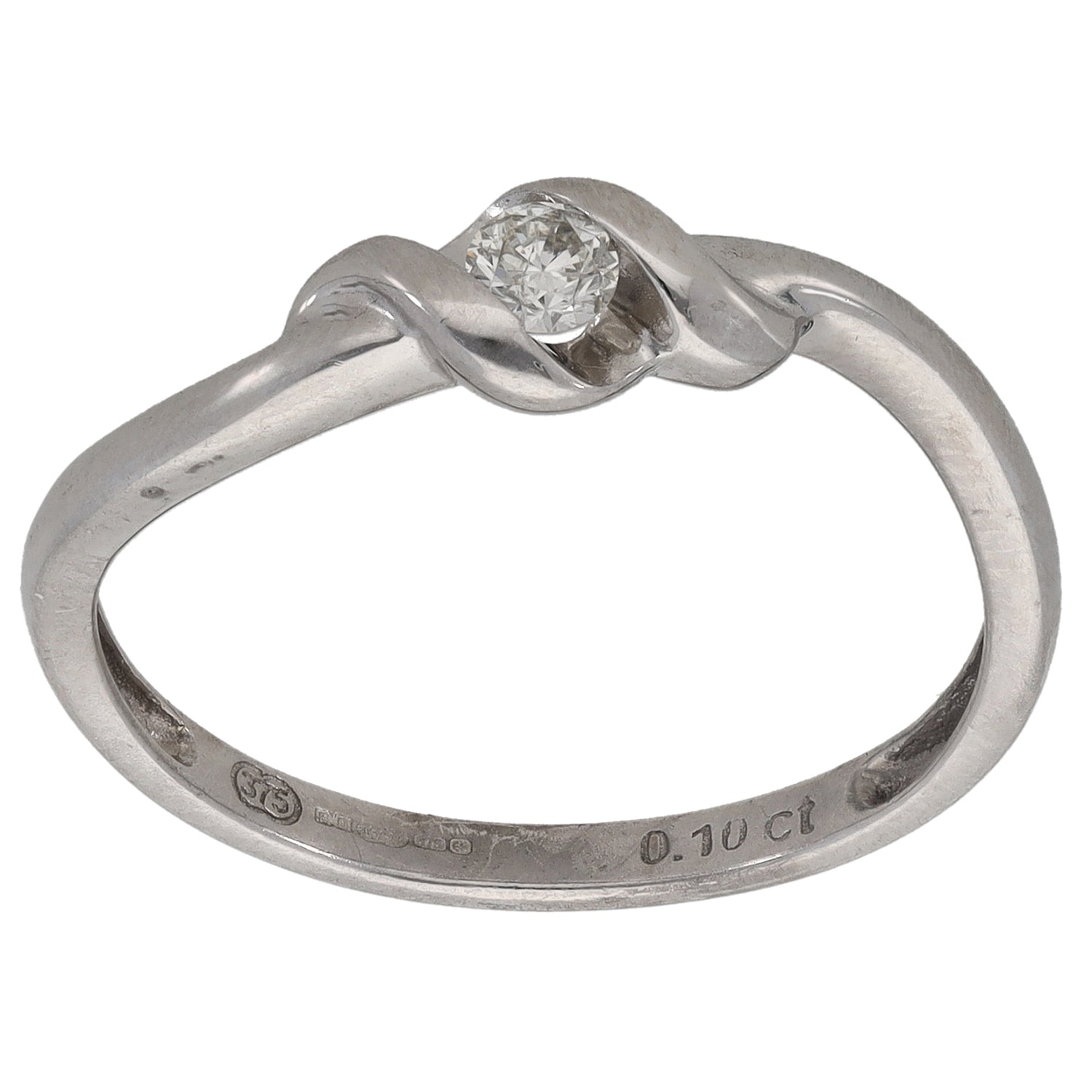9ct White Gold 0.10ct Diamond Solitaire Ring Size P