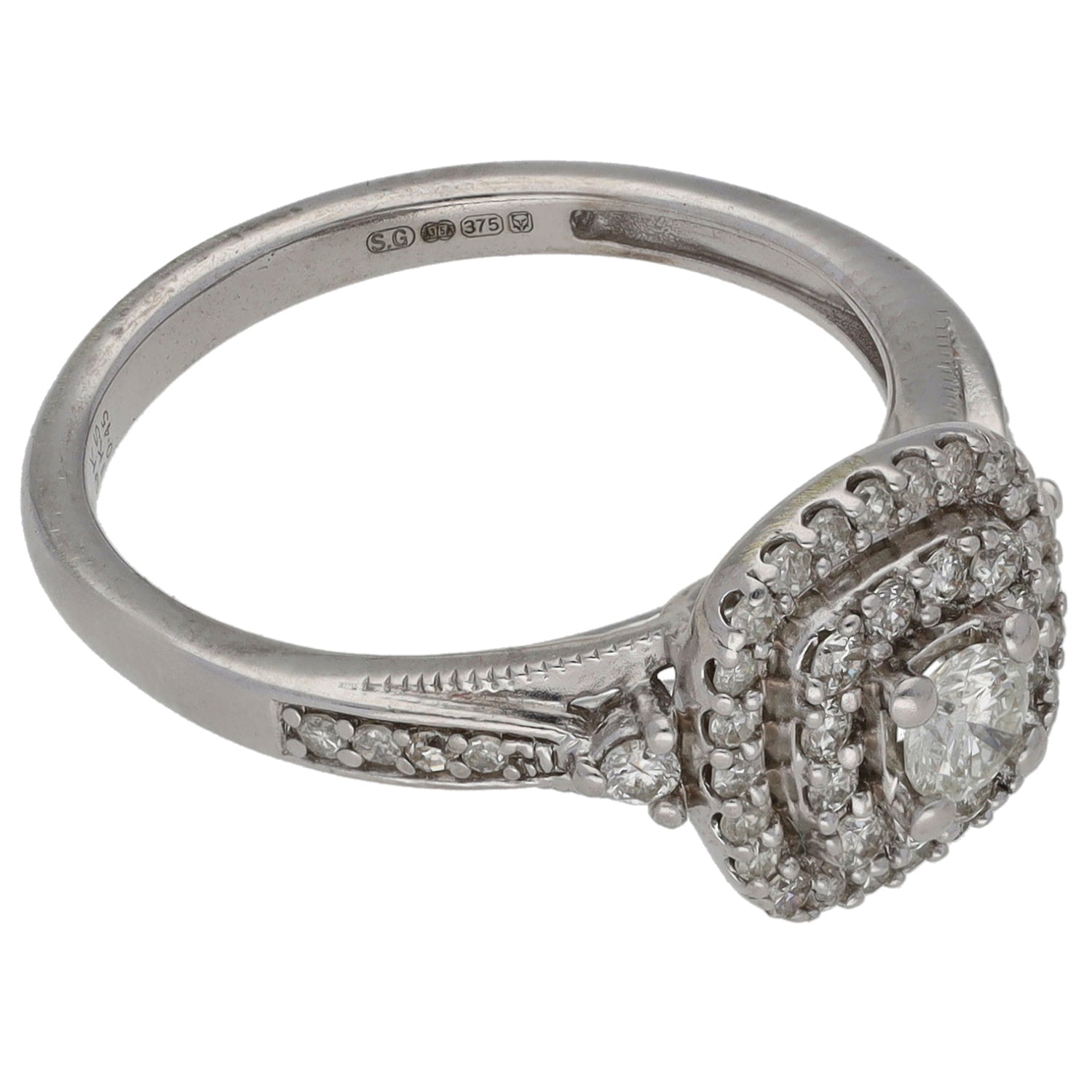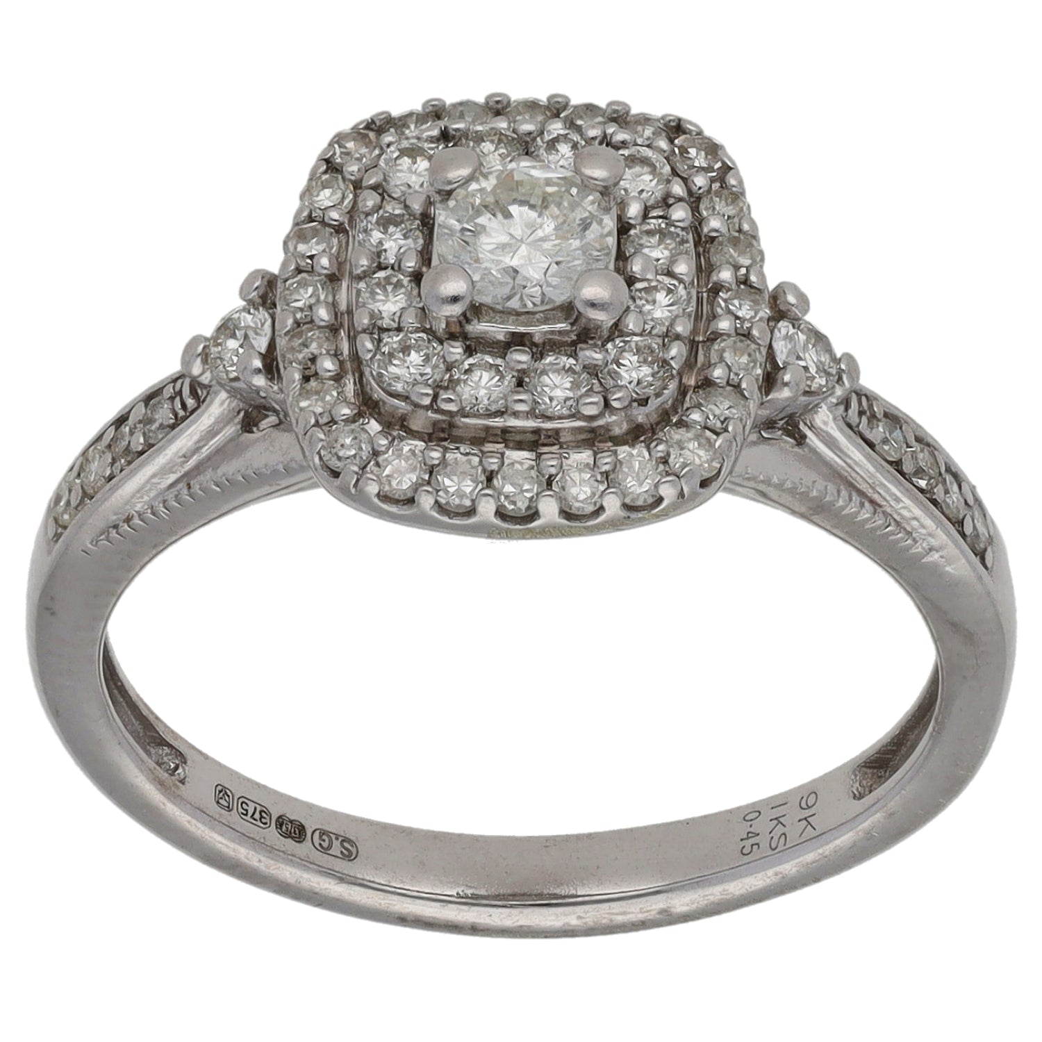 9ct White Gold 0.45ct Diamond Halo Ring Size L