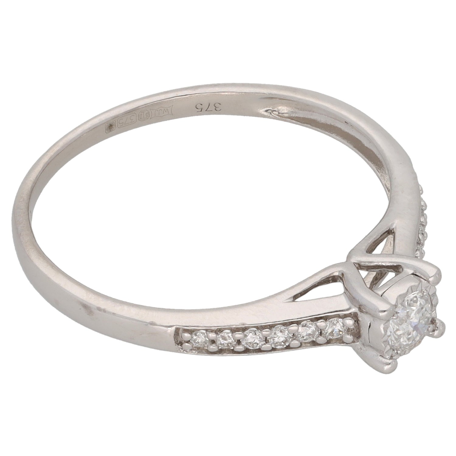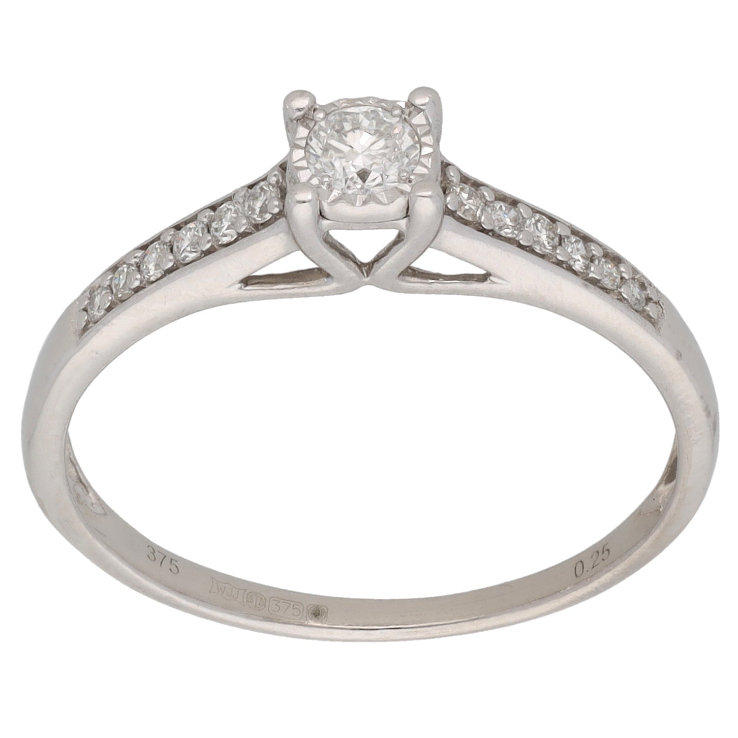 9ct White Gold 0.27ct Diamond Solitaire Ring With Accent Stones Size Q