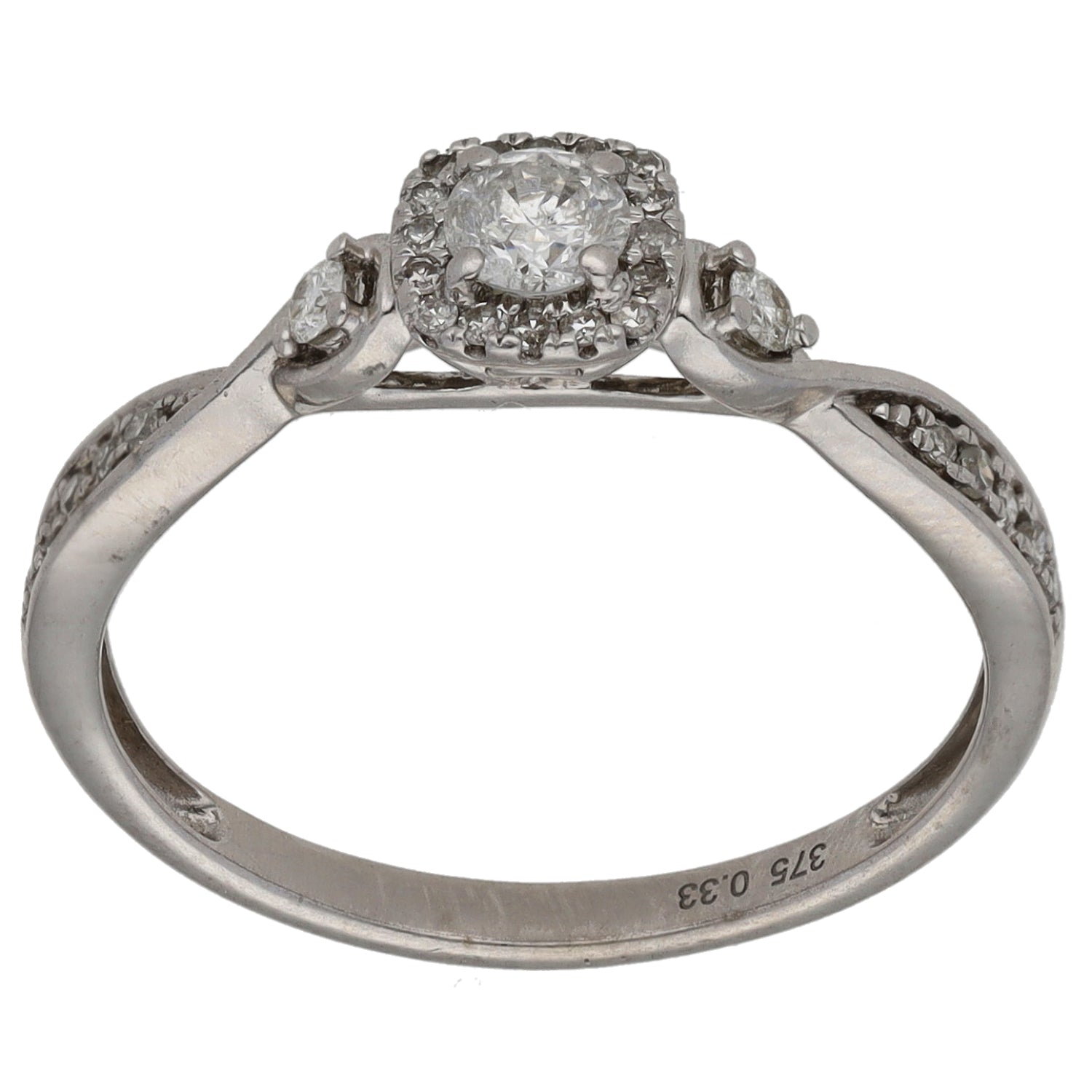 9ct White Gold 0.33ct Diamond Cluster Ring Size O
