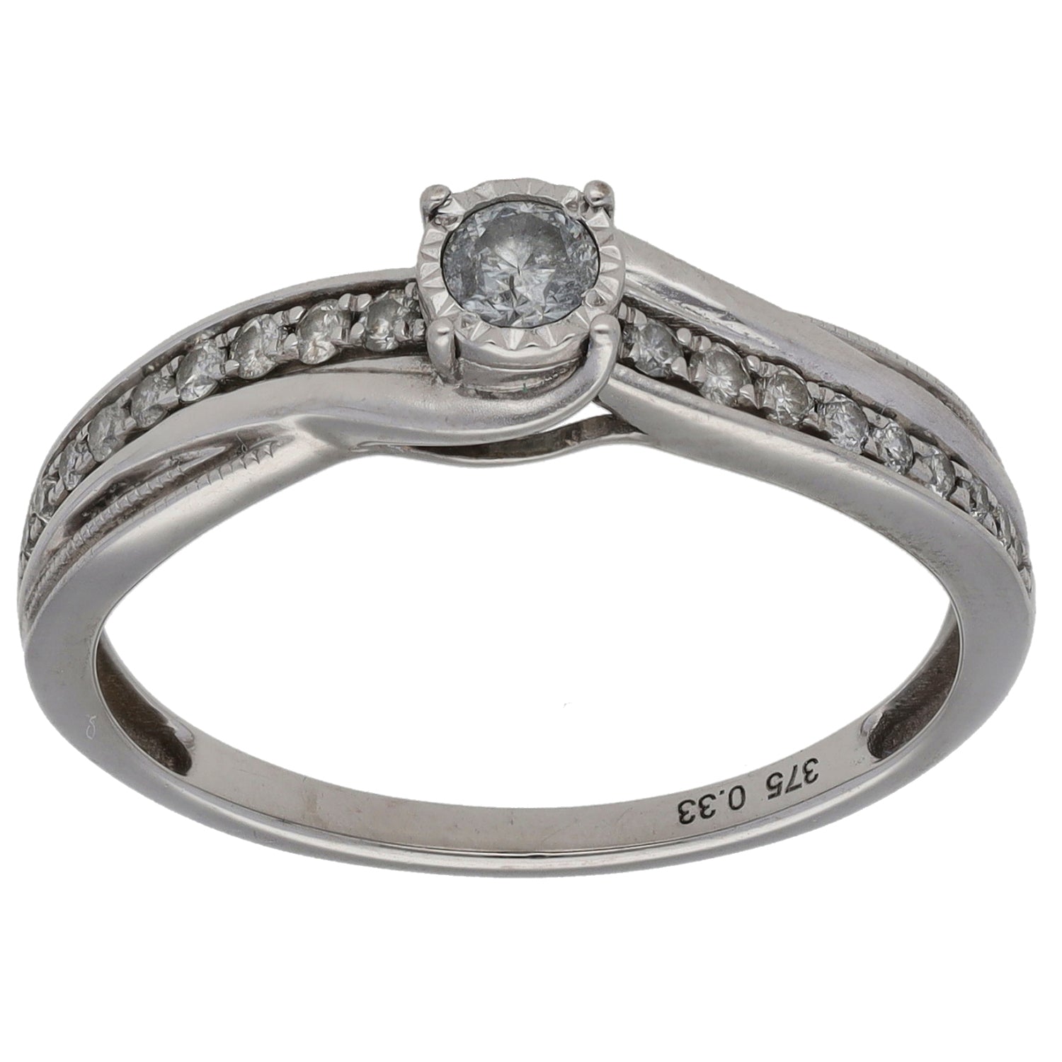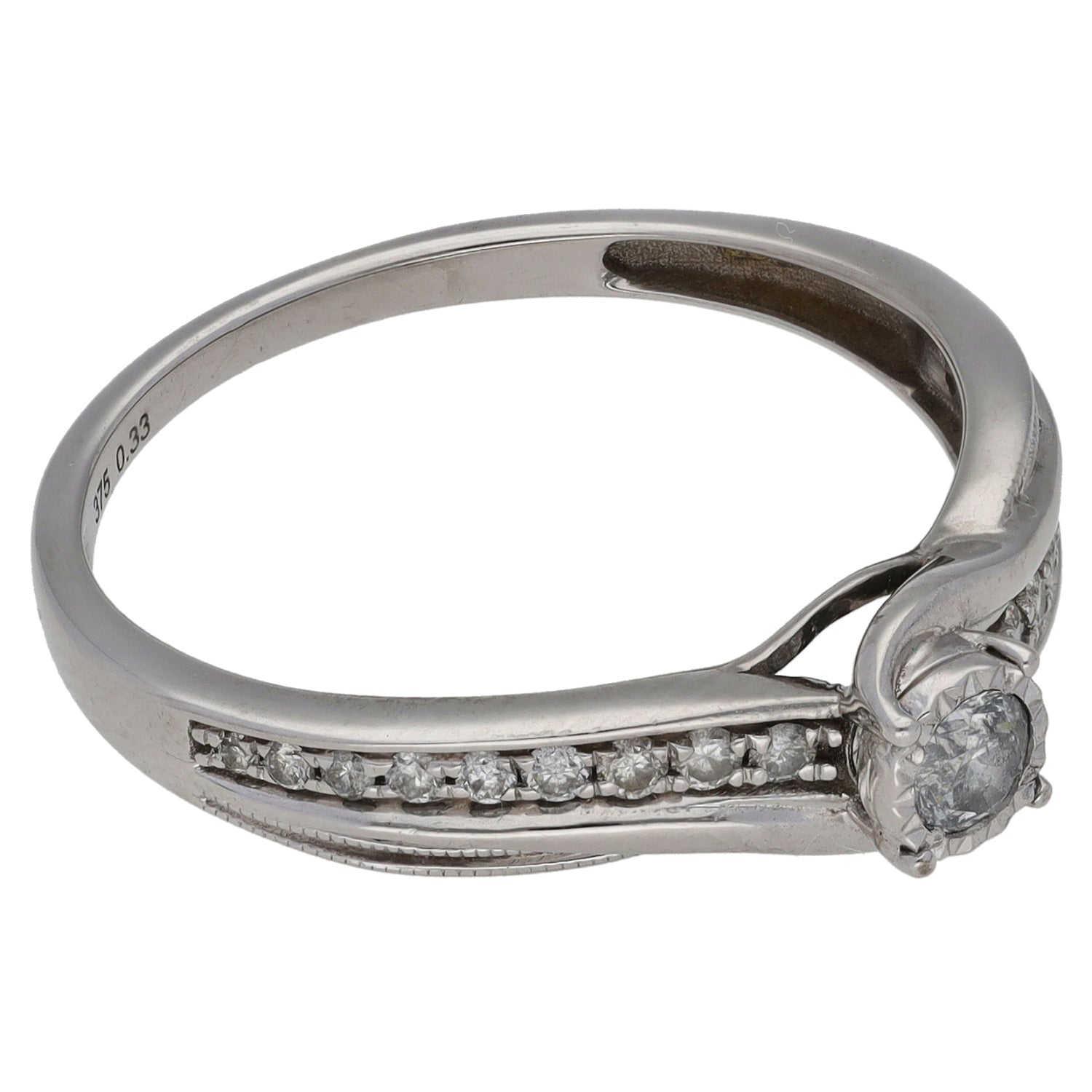 9ct White Gold 0.33ct Diamond Solitaire Ring With Accent Stones Size R