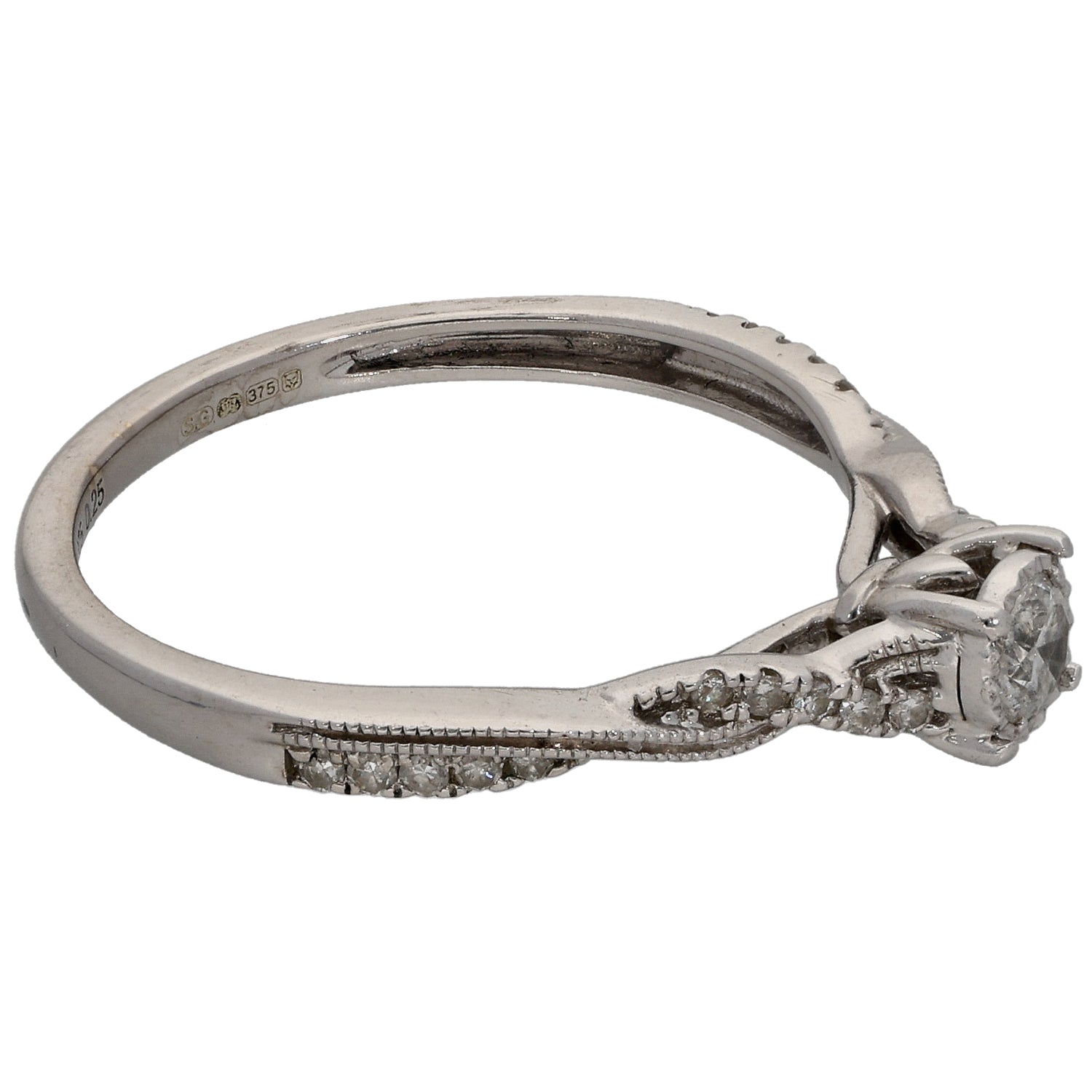 9ct White Gold 0.25ct Diamond Solitaire Ring With Accent Stones Size N