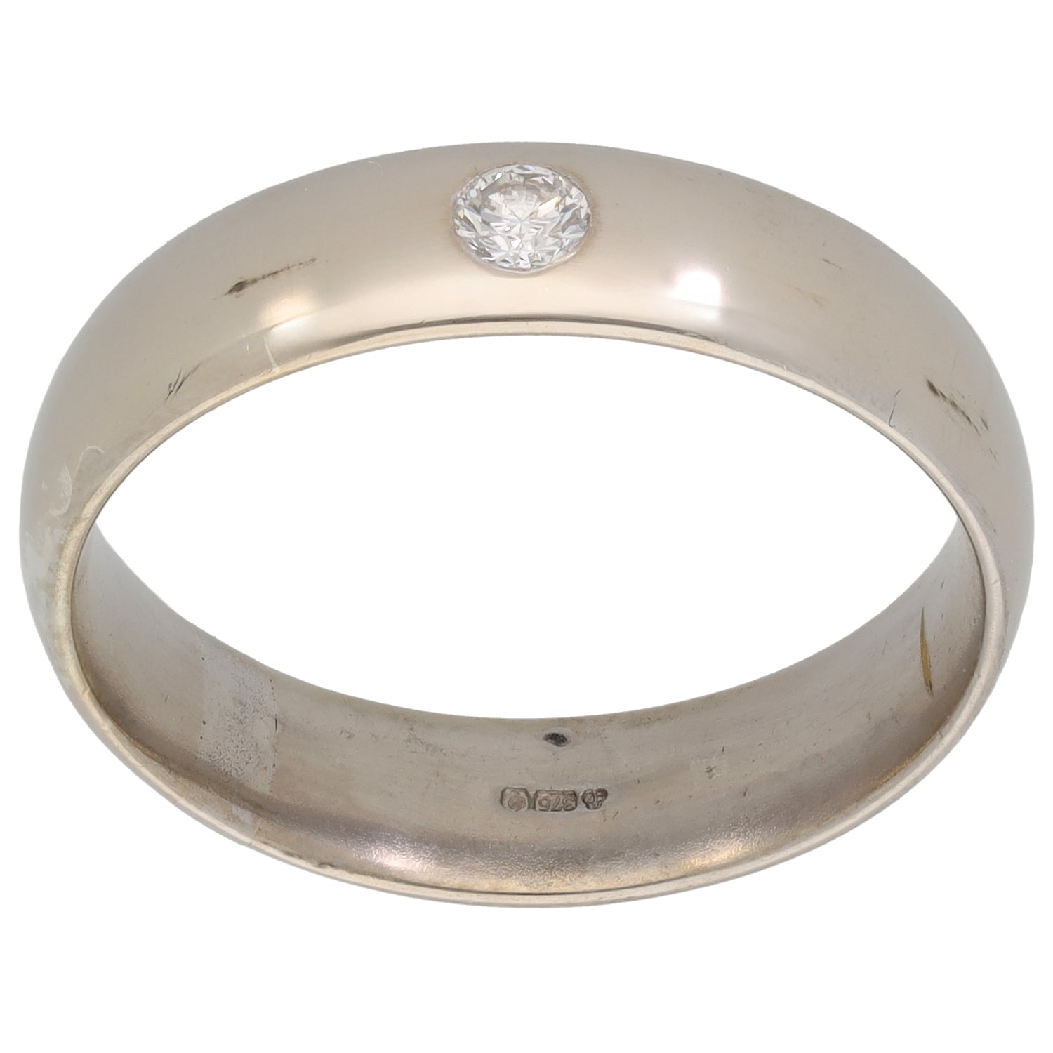 9ct White Gold 0.15ct Diamond Plain Wedding Ring Size Y