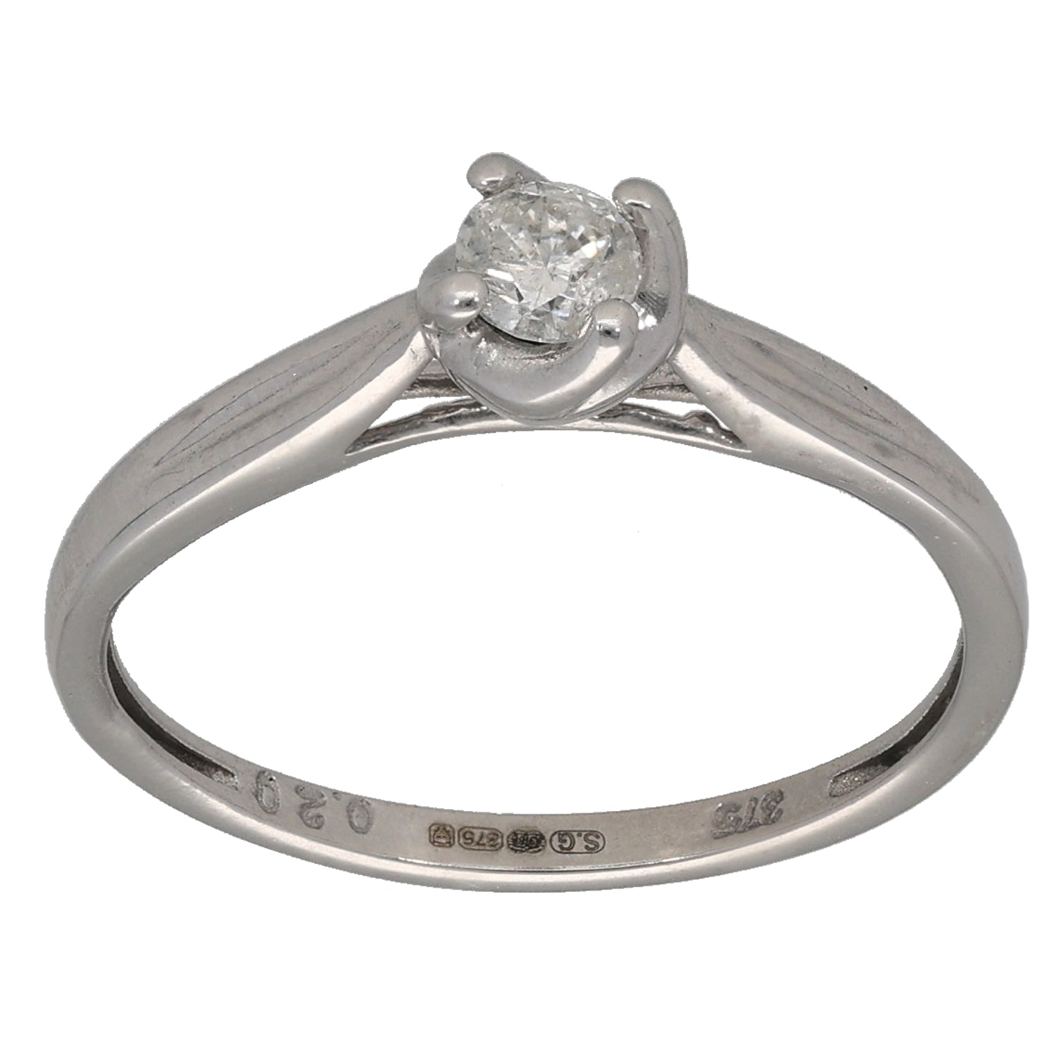 9ct White Gold 0.20ct Diamond Solitaire Ring Size M