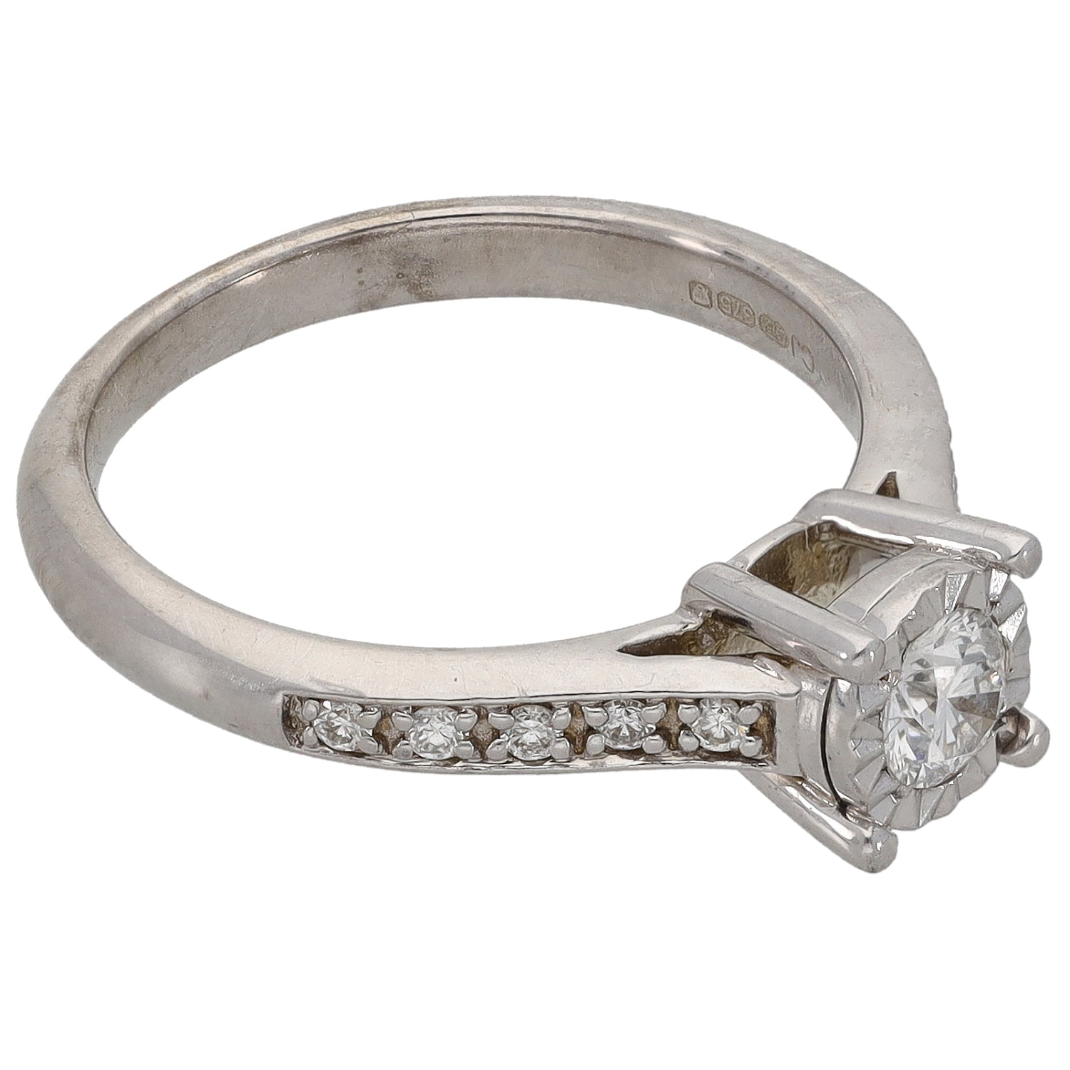 9ct White Gold 0.35ct Diamond Solitaire Ring With Accent Stones Size L